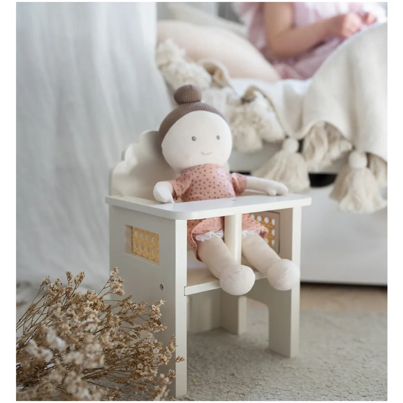 Ova prekrasna drvena stolica za lutke ima nježnu i očaravajuću krem boju koja će se savršeno uklopiti u dječju sobu. Sa svojim divnim ukrasnim detaljima, ova stolica nije samo igračka, već i pravi ukras za prostor.