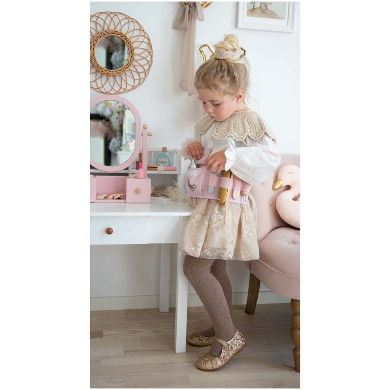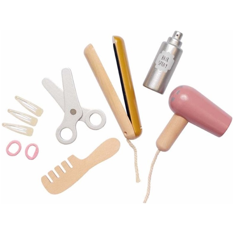 S ovim setom, djeca će imati sve što im je potrebno postati pravi mali frizeri. Uz praktični pojas, sav alat bit će im uvijek pri ruci. Set uključuje peglu za kosu, češalj, škare, fen, 3 ukosnice, 2 gumice i čak bočicu laka za kosu. Ali, ne brinite, sve je samo igra!