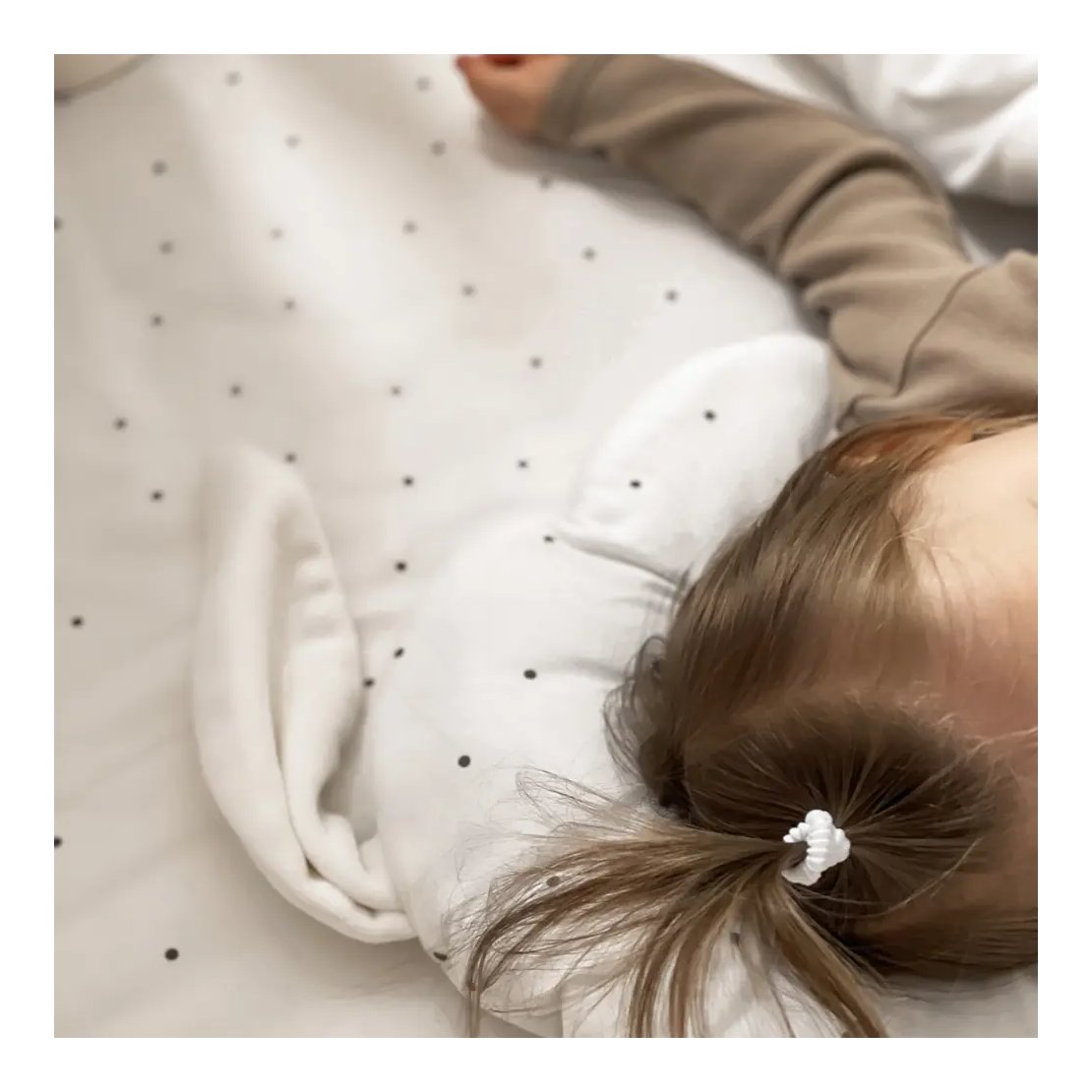 Jastuk Uško dolazi s dugim, mekanim ušima koje su više od običnog dodatka – one su savršena mazilica koja pruža osjećaj sigurnosti i udobnosti od prvog dana. Njegova dimenzija od 30×28 cm čini ga idealnim suputnikom za vašu bebu, dok su lagani i nježni materijali pažljivo birani da budu potpuno sigurni za najosjetljiviju kožu. Proizveden s ljubavlju u Hrvatskoj, ovaj jastuk odražava visoke standarde kvalitete i sigurnosti, a njegova bezvremenska kombinacija točkastog uzorka i krem boje savršeno se uklapa u svaki dječji kutak.