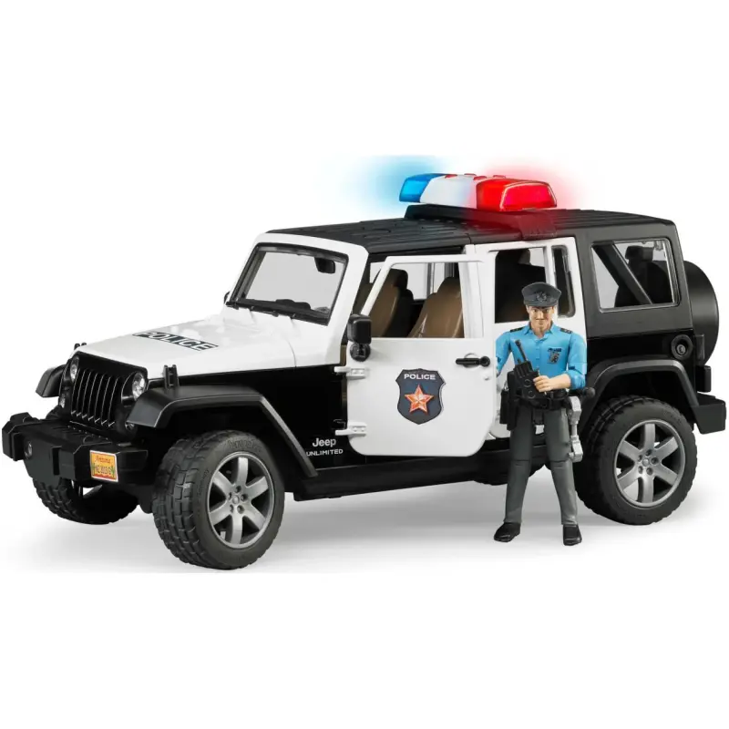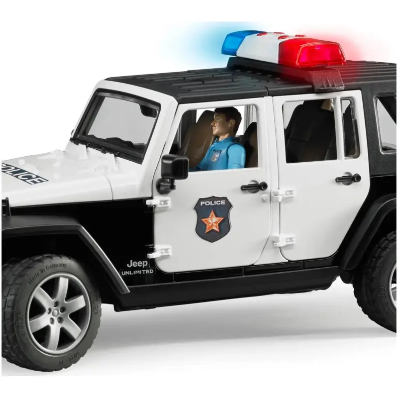 Dizajniran kao policijsko vozilo, Jeep Wrangler Unlimited Rubicon pruža vam bezbroj mogućnosti za igru. S pokretnim dijelom krova, poklopcem motora, stražnjim vratima i svim četiri bočna vrata koja se mogu otvoriti, ovo vozilo nudi prostor za četiri BRUDER bworld figure. Ako želite, možete čak ukloniti stražnje sjedalo kako biste stvorili prostor za dodatnu opremu u teretnom prostoru vozila. I ne brinite, dodatna upravljačka veza olakšat će vam upravljanje kroz otvor na krovu.