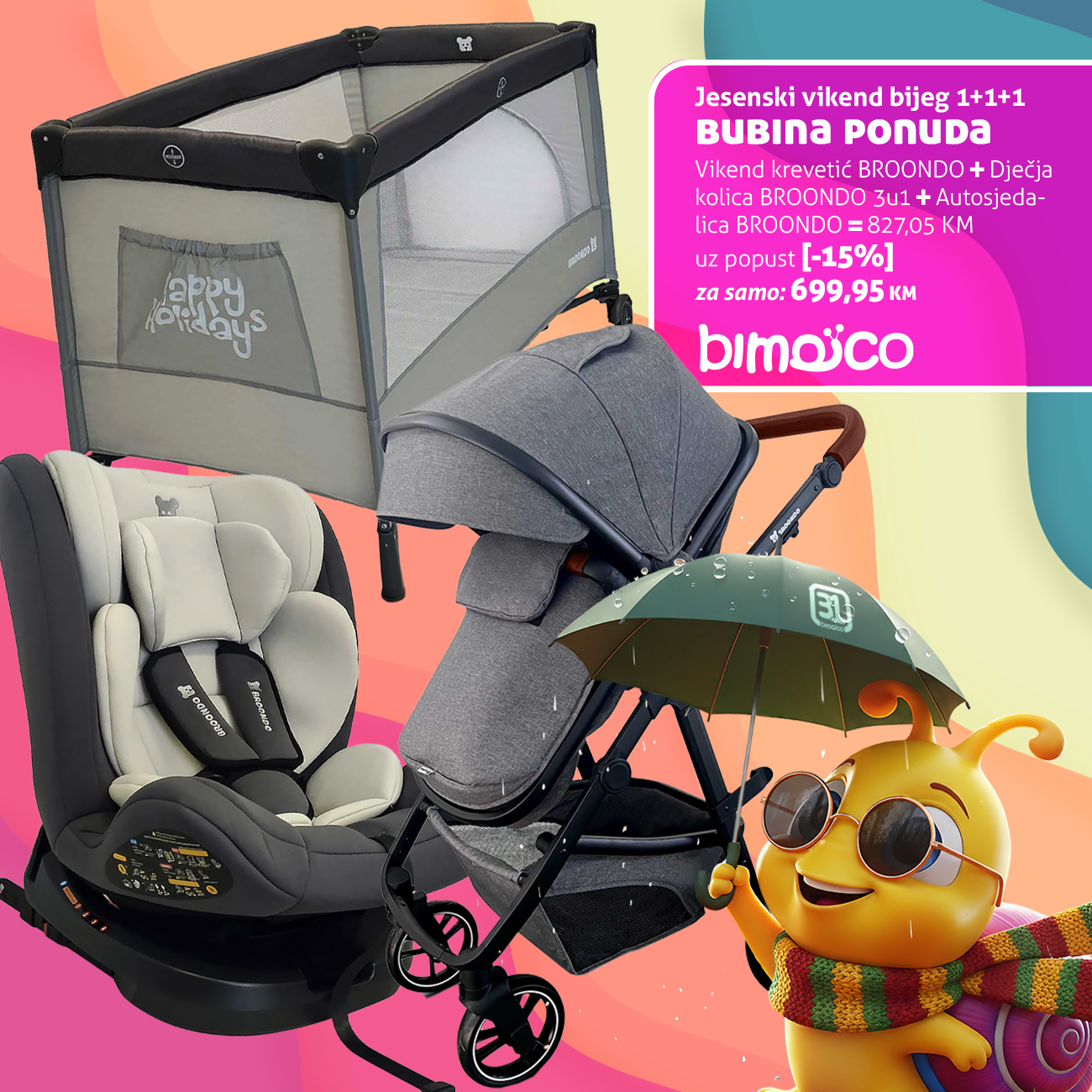 – CPT 3u1 kolica Broondo – multifunkcionalna kolica koja rastu s vašom bebom, uz mogućnost korištenja kao kolica, košara i autosjedalica.