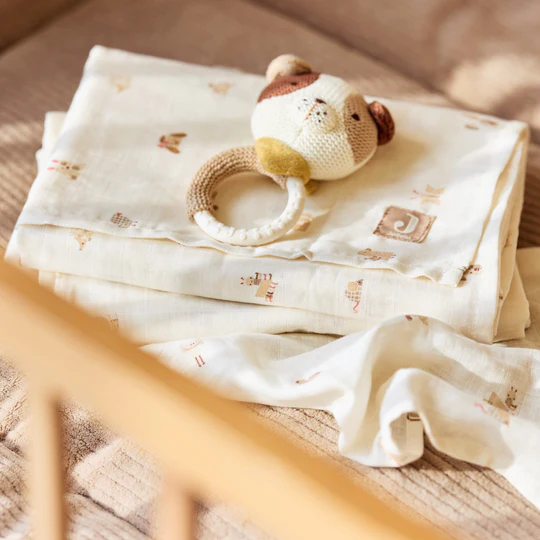 Svakoj bebi je potreban osjećaj nježnosti i sigurnosti, a Jollein Pamučne pelene od muslina Animal Friends donose upravo to. Ove muslinske pelene su neophodan dodatak za svakog roditelja. Njihova izuzetna mekoća i prostranost čine ih idealnim izborom za povijanje, korištenje kao dekice ili podloge za presvlačenje. Uživajte u pogledu na simpatični dizajn Animal Friends sa veselim životinjicama, koji dodaje dašak zabave u svakodnevnu rutinu njegovanja vašeg djeteta.