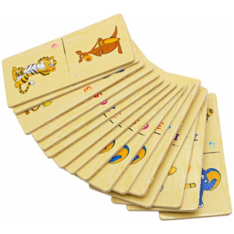 - Šareni set domino pločica sa motivima životinja iz džungle.