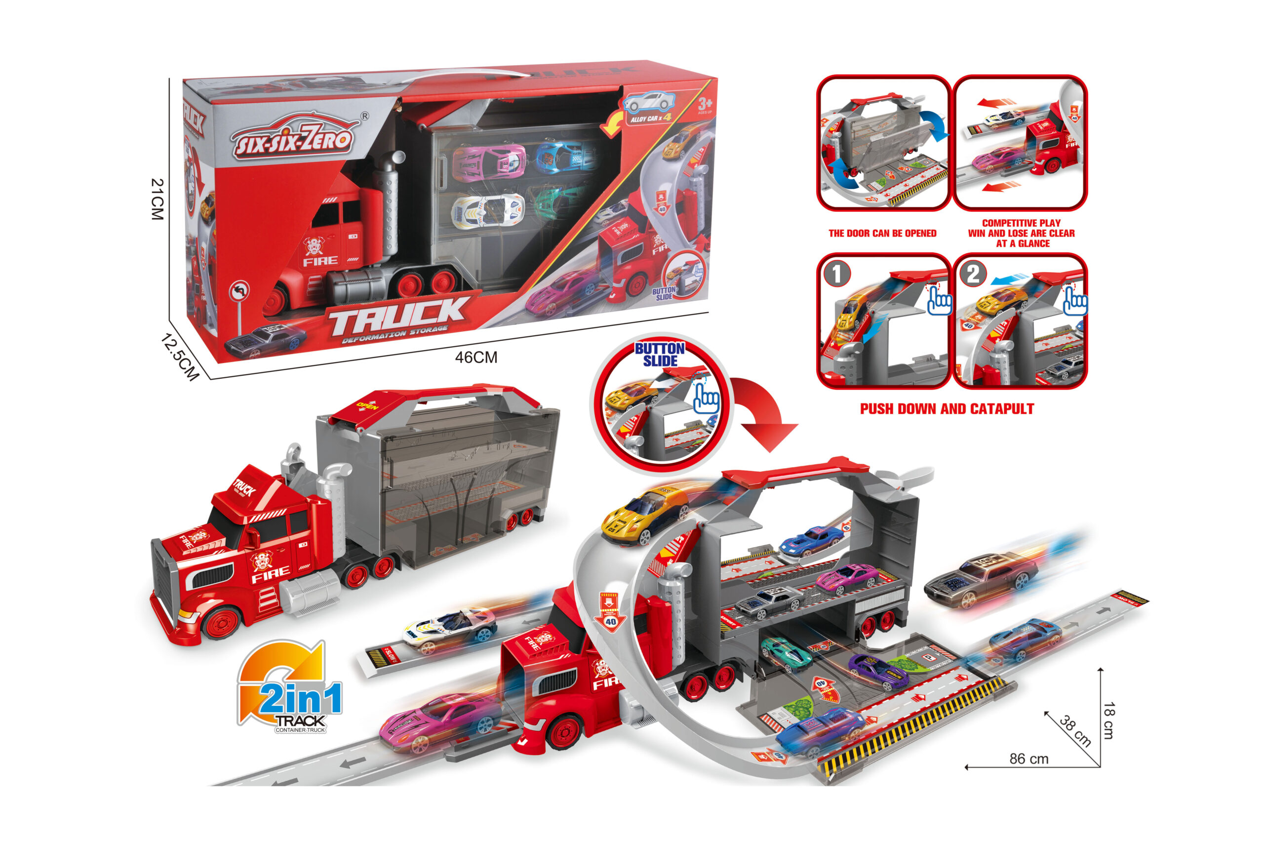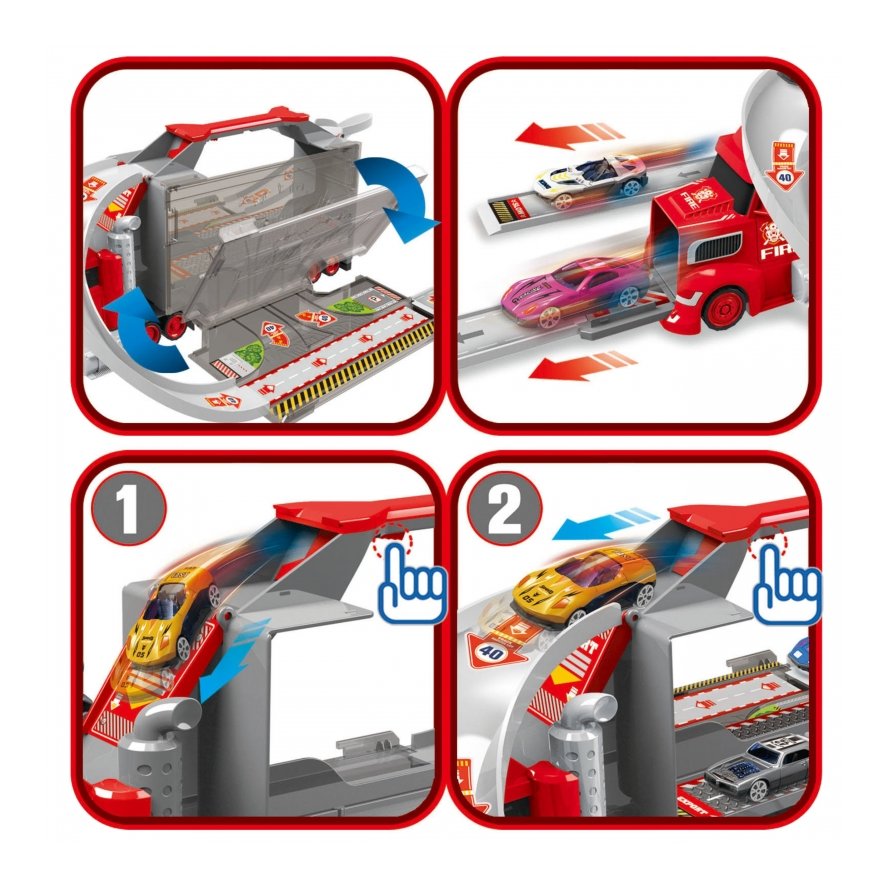 Ključna karakteristika koja ovaj proizvod čini jedinstvenim je njegova multifunkcionalnost. Ne samo da služi kao savršeno skladište za autiće, već zahvaljujući posebnom dizajnu, prednji dio kabine kamiona funkcionira kao uzbudljiva staza za utrke. Djeca mogu jednostavno dodati dijelove staze na prednji dio, postaviti autić na vrh, i gledati kako juri nizbrdo. Osim toga, set dolazi s dva helikoptera, mini kamionom i čak 12 izdržljivih die cast automobila koji će izdržati test vremena i igre.