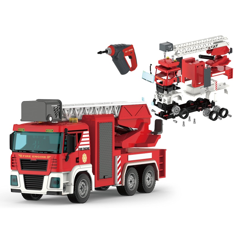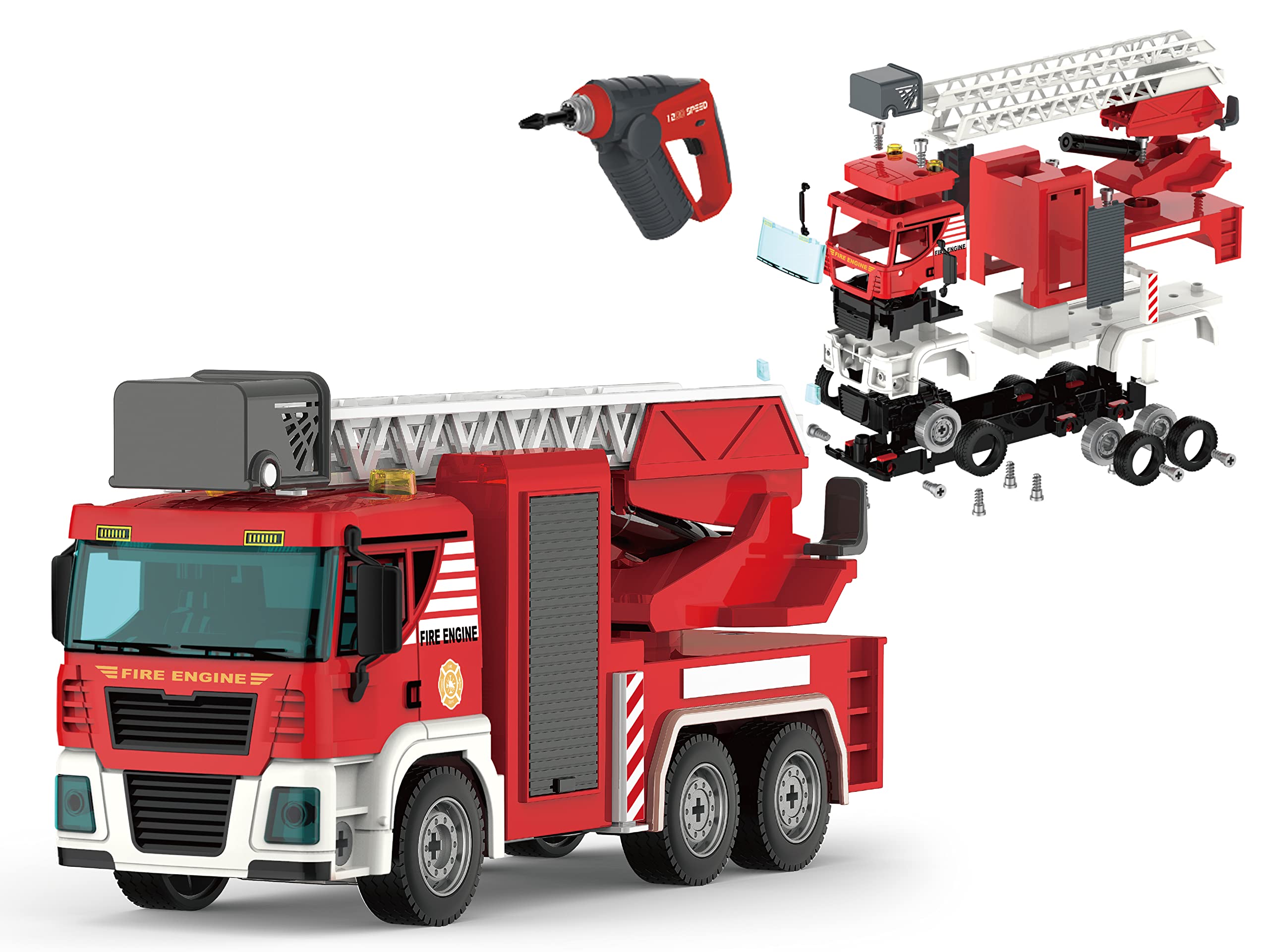 Ovaj interaktivni vatrogasni kamion za sastavljanje pruža djeci sate kreativne i edukativne igre! Uz 95 dijelova, električni odvijač sa svjetlom i realističnim zvukom, mali majstori mogu sami sastaviti svoje vozilo i postati pravi vatrogasni heroji.