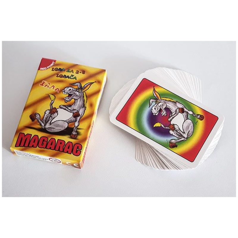 Zanimljive karte od 33 komada sa likovima životinja u 8 setova boja, te kartom Magarca. Neka se vali mališani zabave.
