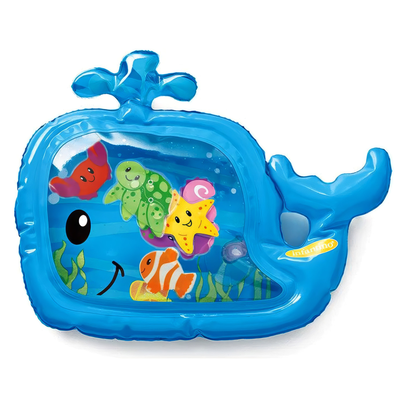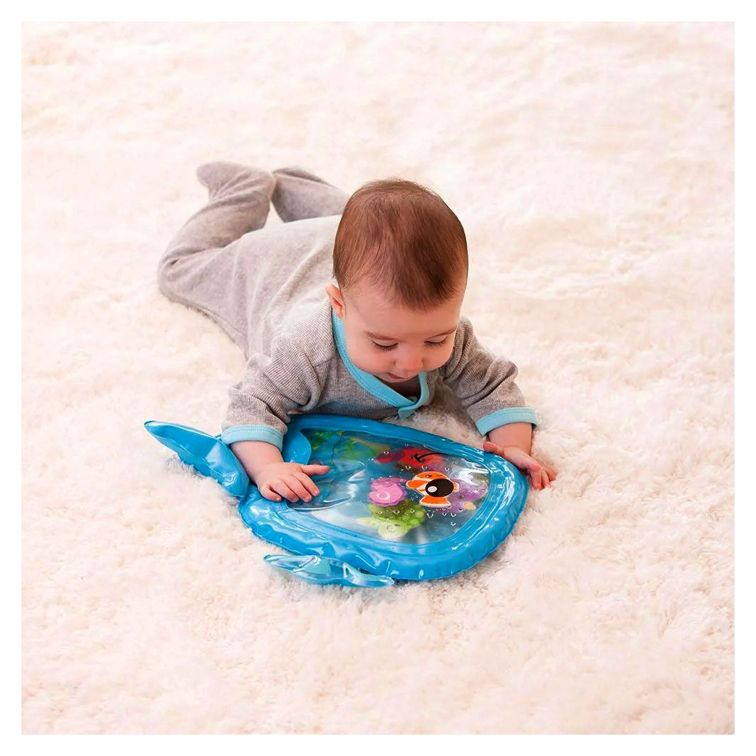 Ova šarena i mekana vodena prostirka pretvara svako vrijeme na trbuhu u nezaboravnu avanturu. Dovoljno je napuniti je vodom i uživanje može početi – šest veselih likova slobodno pluta i kreće se svakim dodirom. Idealna je za bebe koje tek otkrivaju svijet, čime potiče znatiželju i razvoj osjetila.