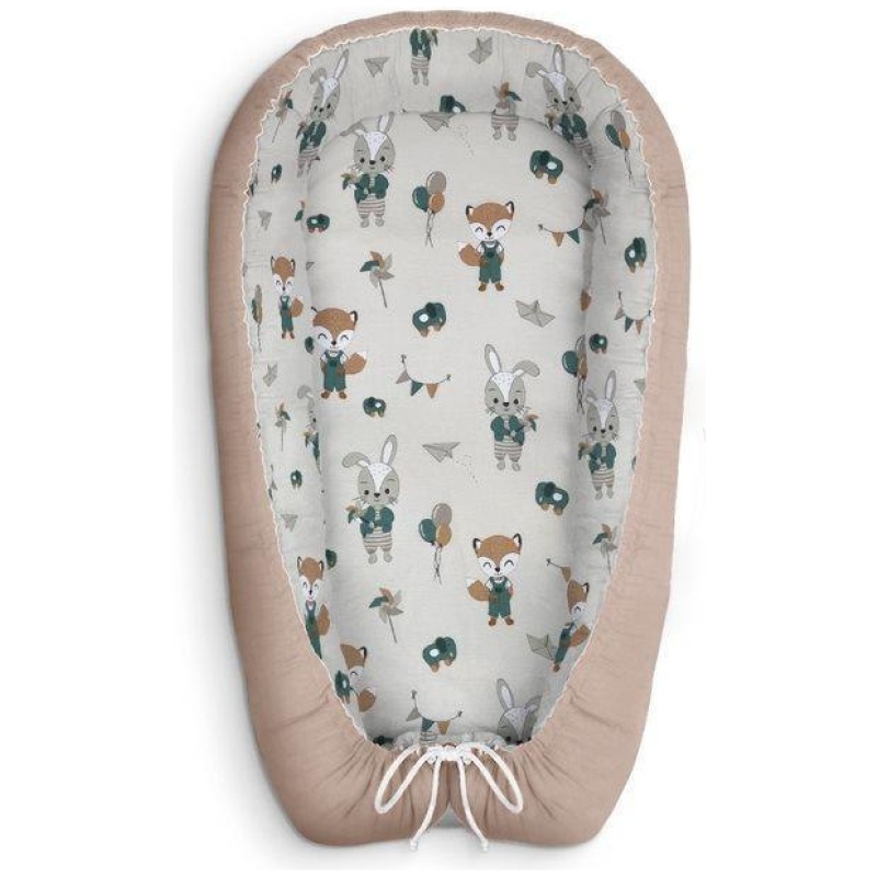 Zahvaljujući uzici, gnijezdo se lako može povećati ili smanjiti, pripazite da je uzica uvijek zavezana prije upotrebe. Osim toga, gnijezdo ima praktičnu ručku za nošenje. Navlaka za dječje gnijezdo, izrađena od 100% pamuka, može se prati na 40° u perilici rublja.