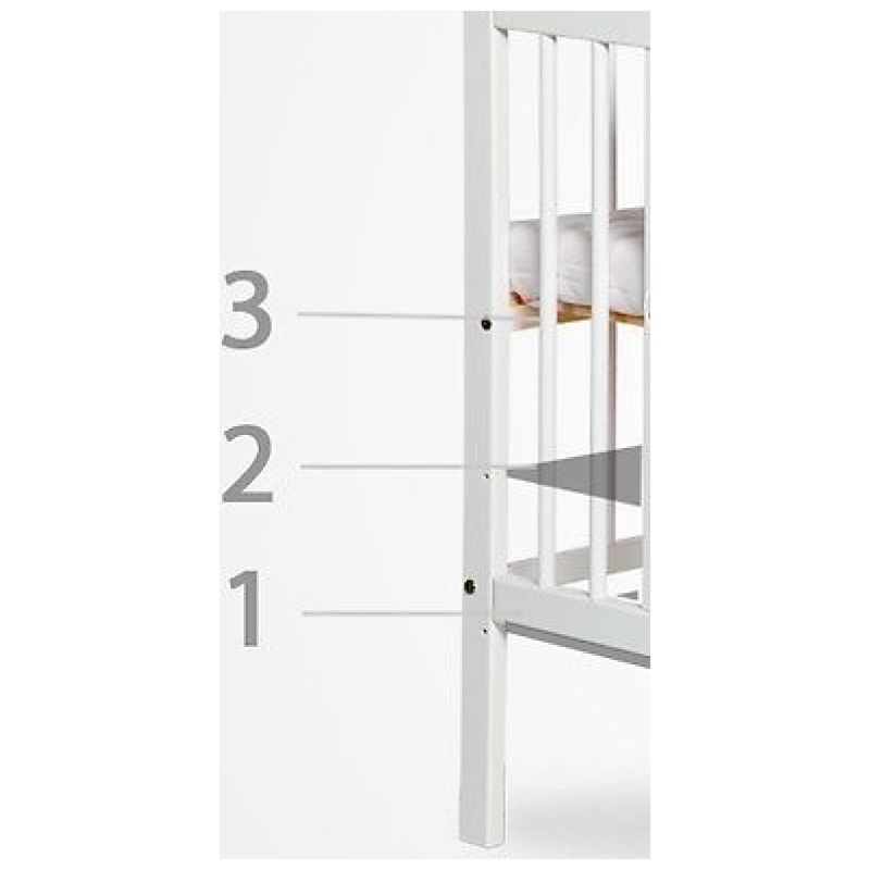 Ovaj je krevetić modernog i decentnog dizajna bijele boje. Krevetić ima tri nivoa te se dno krevetića po uzrastu bebe može štimati na odgovarajuću visinu. Također ima dvije srednje prečke.