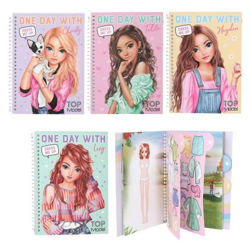 Ovaj set malih knjiga s naljepnicama vodi djecu u svijet modne igre uz četiri omiljena TOPModel lika – Lexy, Talitu, Hayden i Christy. Na 32 stranice sadržaja i 7 dodatnih listova s naljepnicama, mali kreativci mogu birati i kombinirati odjeću prema različitim dijelovima dana. Zahvaljujući spiralnom uvezu, listanje i korištenje je jednostavno i ugodno, a kompaktna veličina čini ovaj proizvod idealnim za putovanja ili zabavu kod kuće.