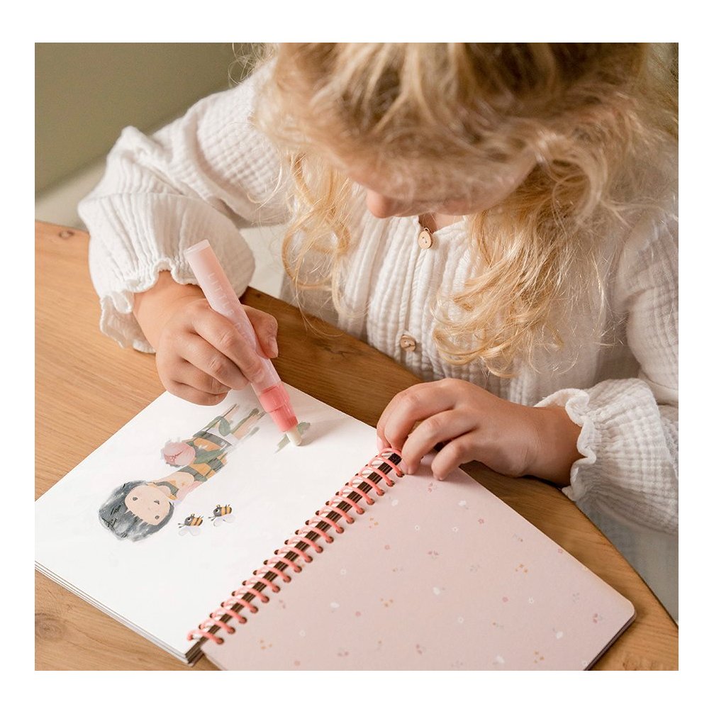 Svako dijete obožava otkrivati skrivene slike, a naš vodeni čarobni bojanka pruža upravo to. Kad voda iz priložene olovke dodirne karton, slike se čudesno pojavljuju, otkrivajući živopisne prikaze cvjetnog vrta, džungle, farme, svemira i mnogo više. Nakon što se papir osuši, čarolija može početi iznova. Sadrži prepoznatljive Little Dutch motive i boje te praktični prstenasti uvez za lako listanje i bojanje.