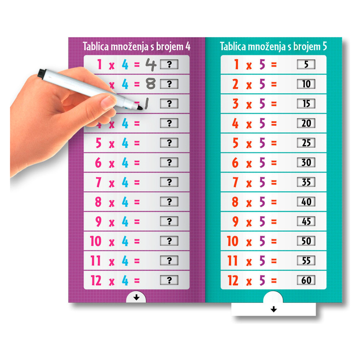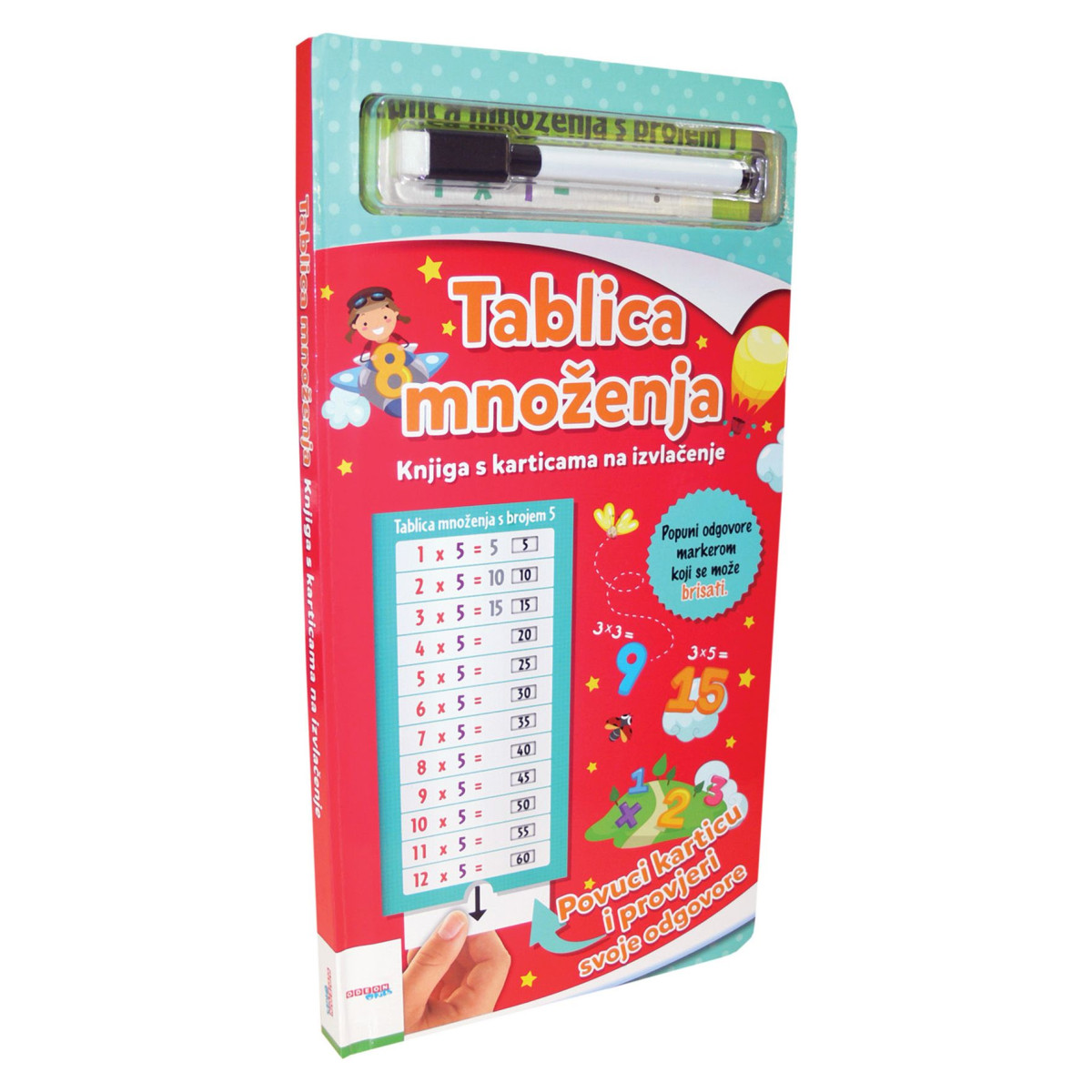 Ova interaktivna knjiga unosi potpuno novu razinu zabave u svladavanje tablice množenja od 1 do 12. Djeca mogu aktivno sudjelovati – vježbati naglas, zapisivati odgovore markerom koji se lako briše i odmah provjeriti rezultat povlačenjem kartice. Svaka vježba je prilika za samostalni uspjeh!