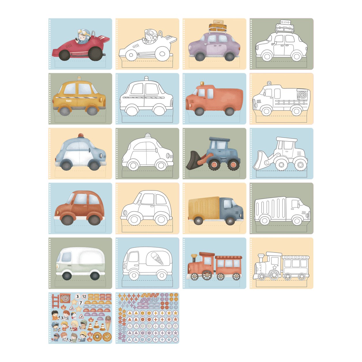 Zahvaljujući 20 pažljivo osmišljenih tiskanih stranica s različitim motivima, djeca mogu izrezivati, sastavljati i ukrašavati vozila prema vlastitim idejama, stvarajući jedinstvene kreacije koje će ponosno pokazivati.