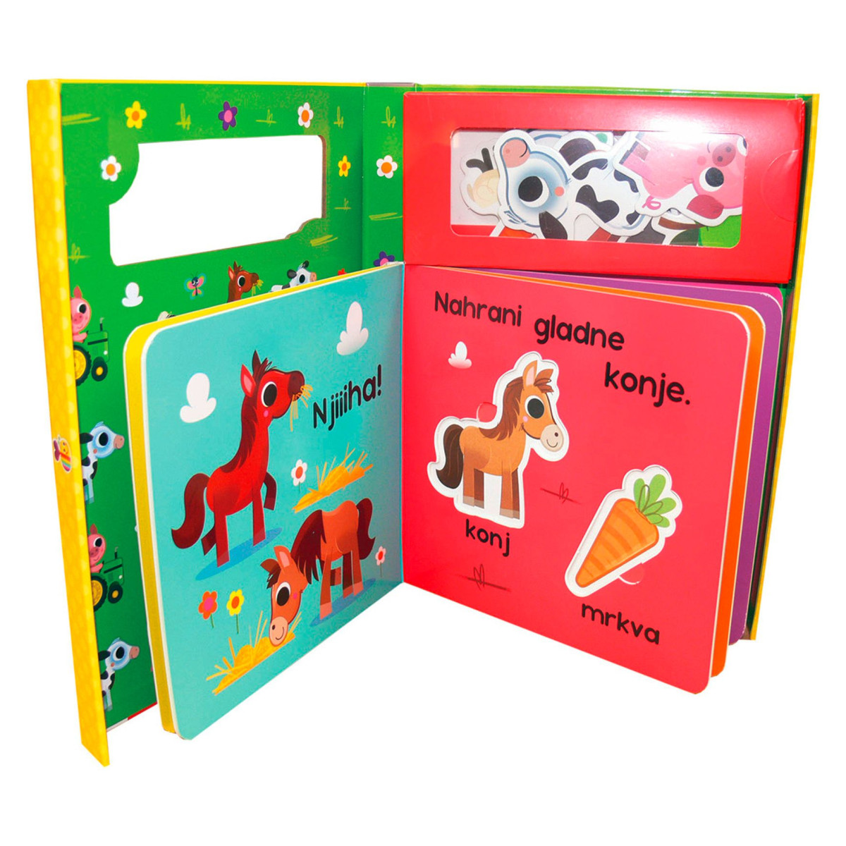 Ova interaktivna slikovnica pretvara svaki trenutak čitanja u zabavu i učenje. Mališani će sa zanimanjem otkrivati šareno seosko imanje, istraživati nove prijatelje među životinjama i razvijati svoje vještine kroz igru. Slagalice u knjizi pažljivo su prilagođene malim ručicama, što omogućava lako i samostalno sudjelovanje najmlađih.