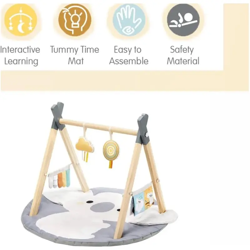 Raznovrsna upotreba i stilski dizajn: Idealno za igru, trbušno vrijeme ili samo za opuštanje, ovaj Baby Gym nudi višenamjenski prostor za uživanje vaše bebe. Prirodni drveni završetak i neutralne boje čine ga savršenim dodatkom za bilo koji stil dječje sobe.