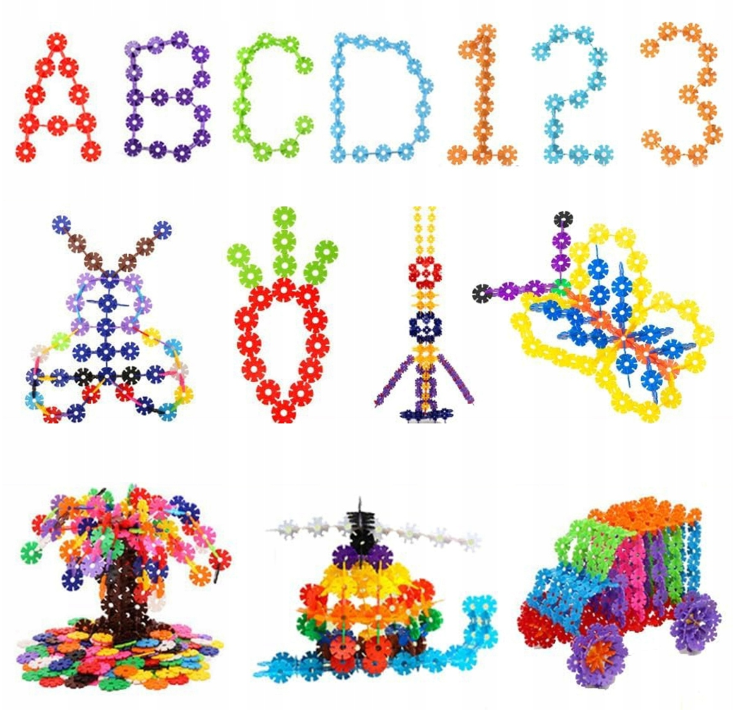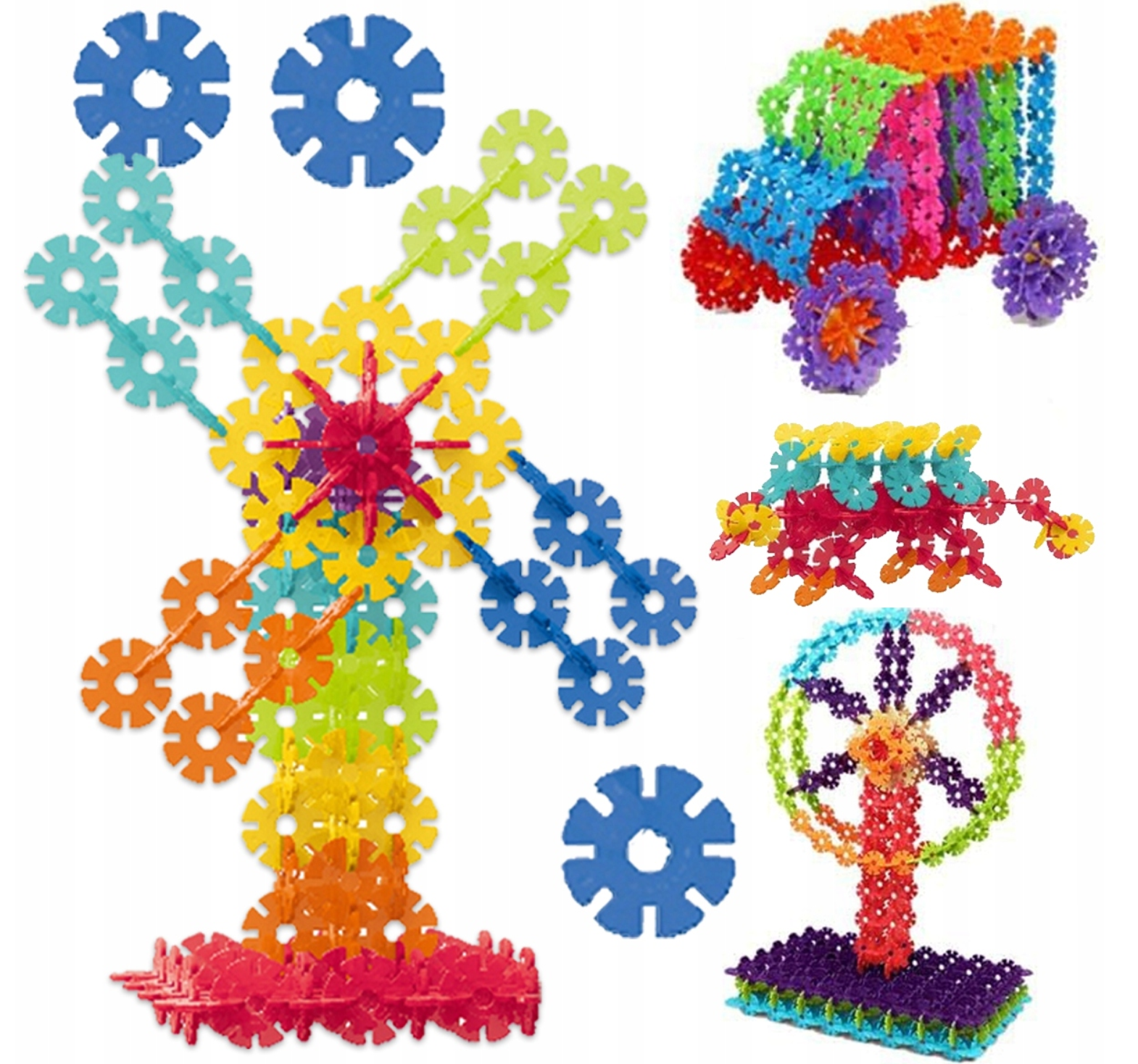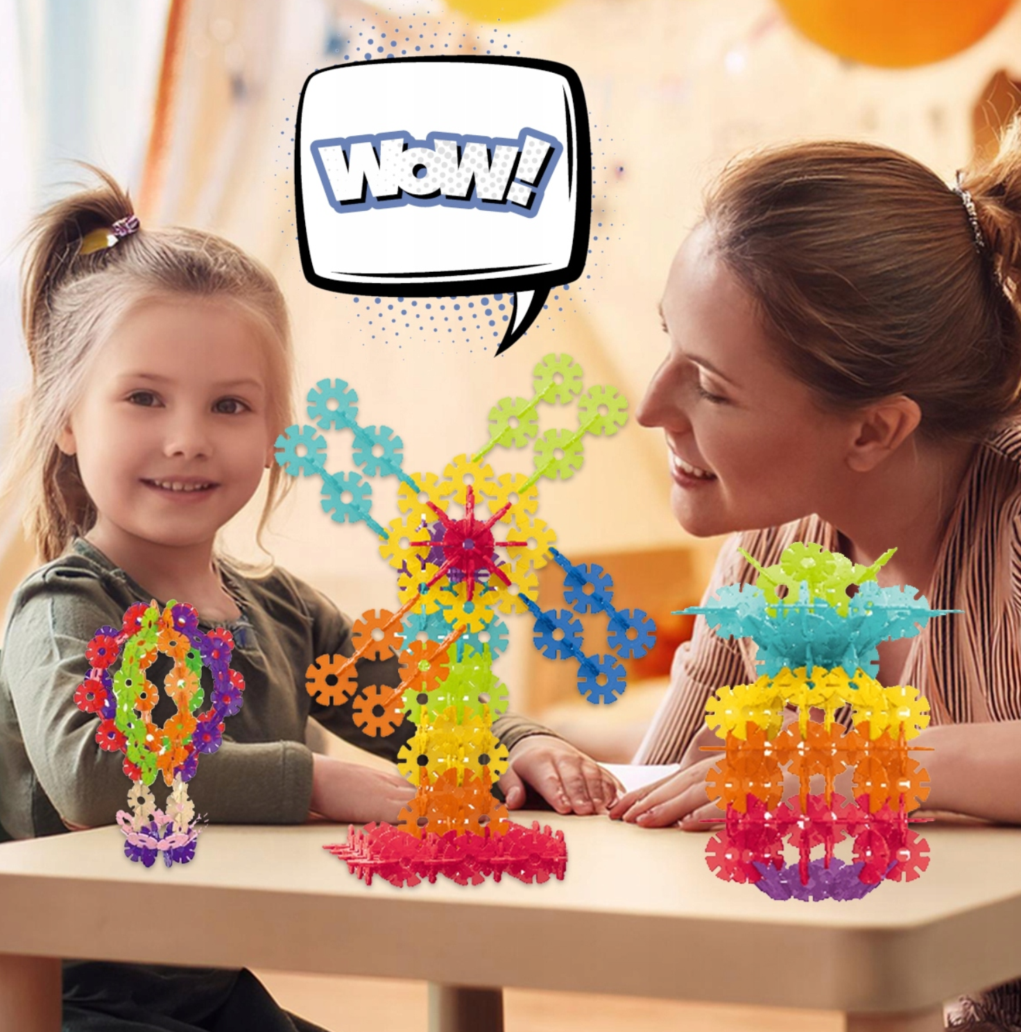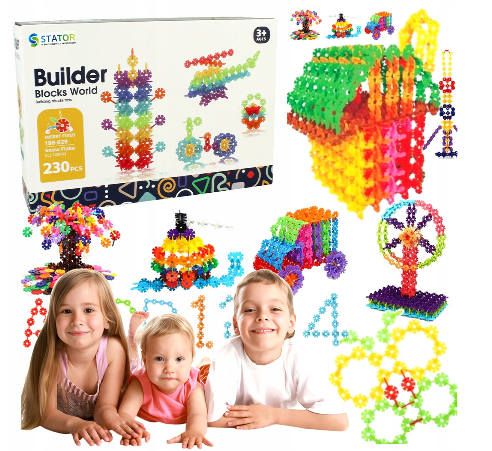 Najveća prednost ovog seta je njegov jedinstveni oblik. Oblik “pahulje” omogućuje jednostavno spajanje krugova, pružajući stabilnost i izdržljivost svim kreacijama. Kocke su izrađene od visokokvalitetnog, netoksičnog plastika s glatkim rubovima, što ih čini potpuno sigurnima za djecu stariju od tri godine.