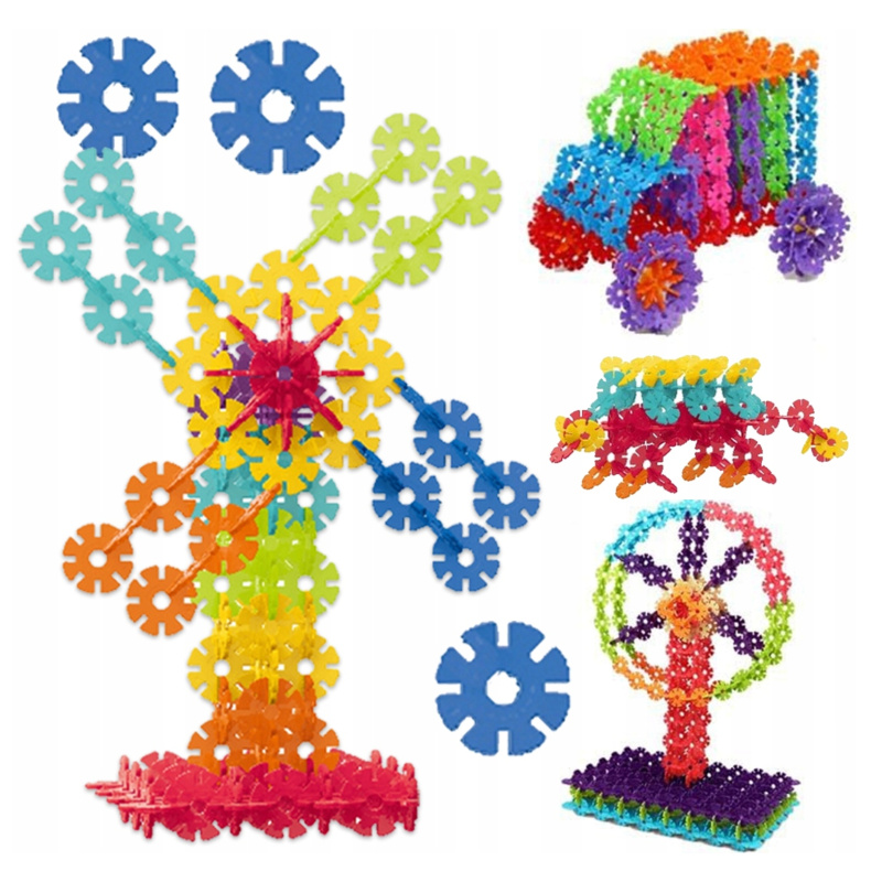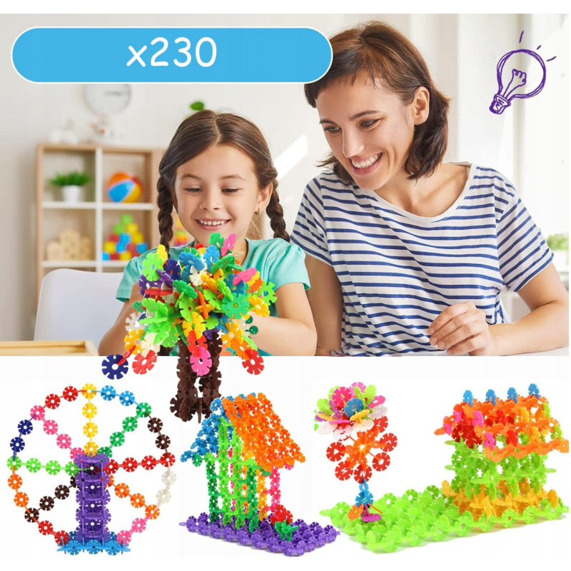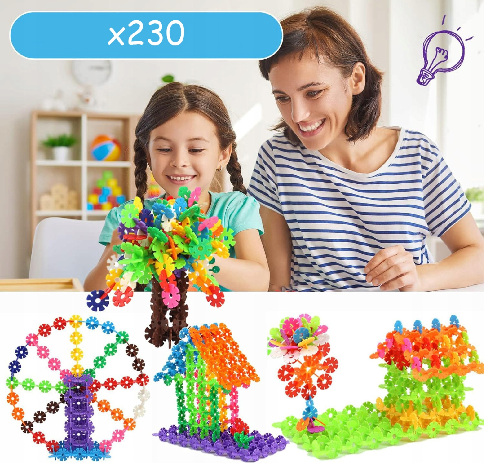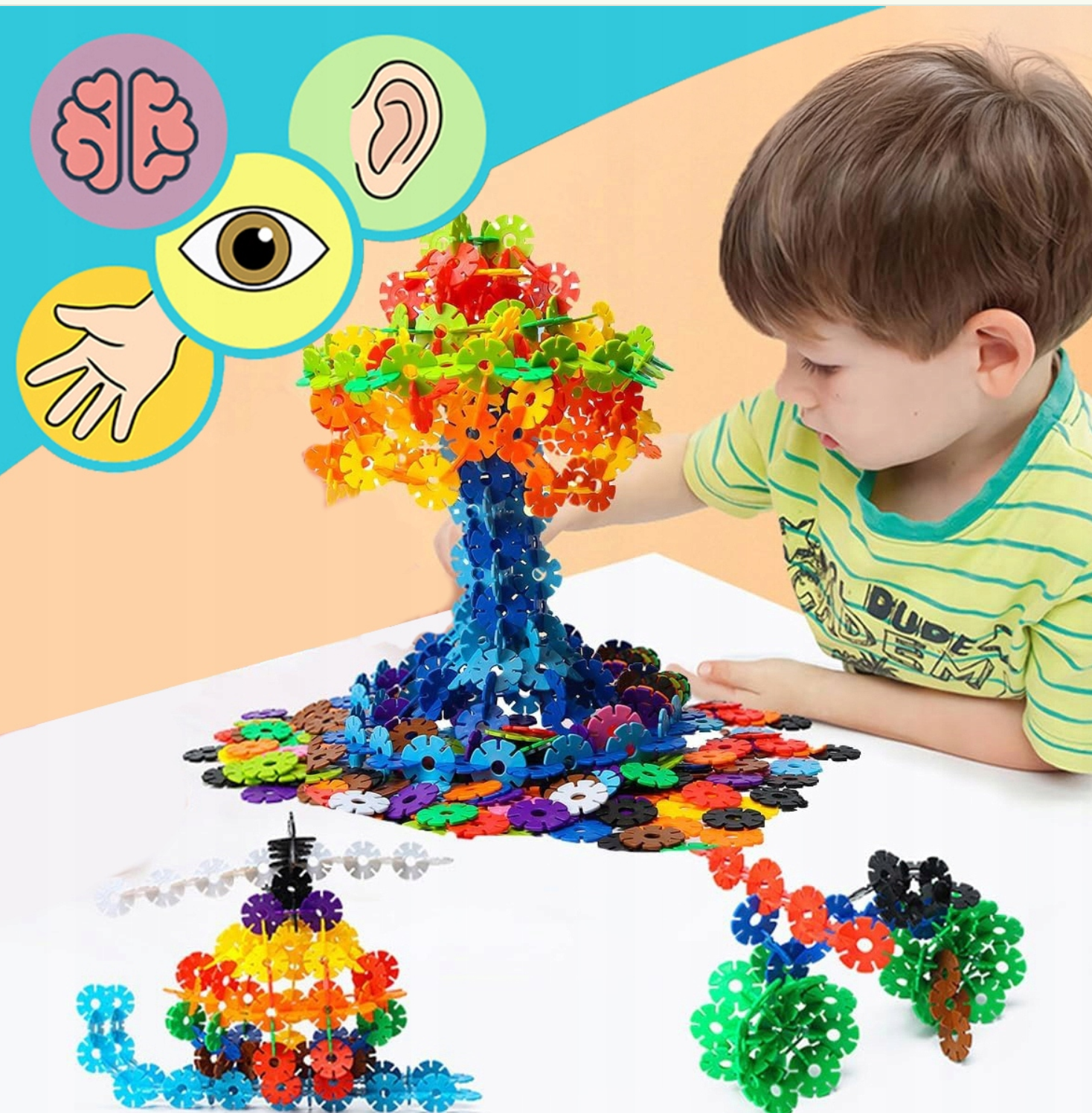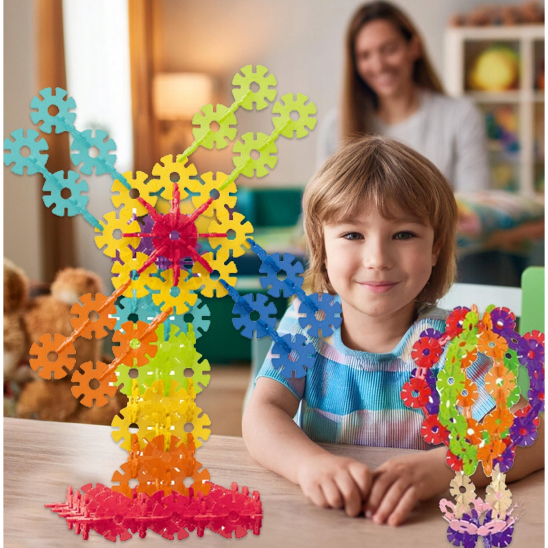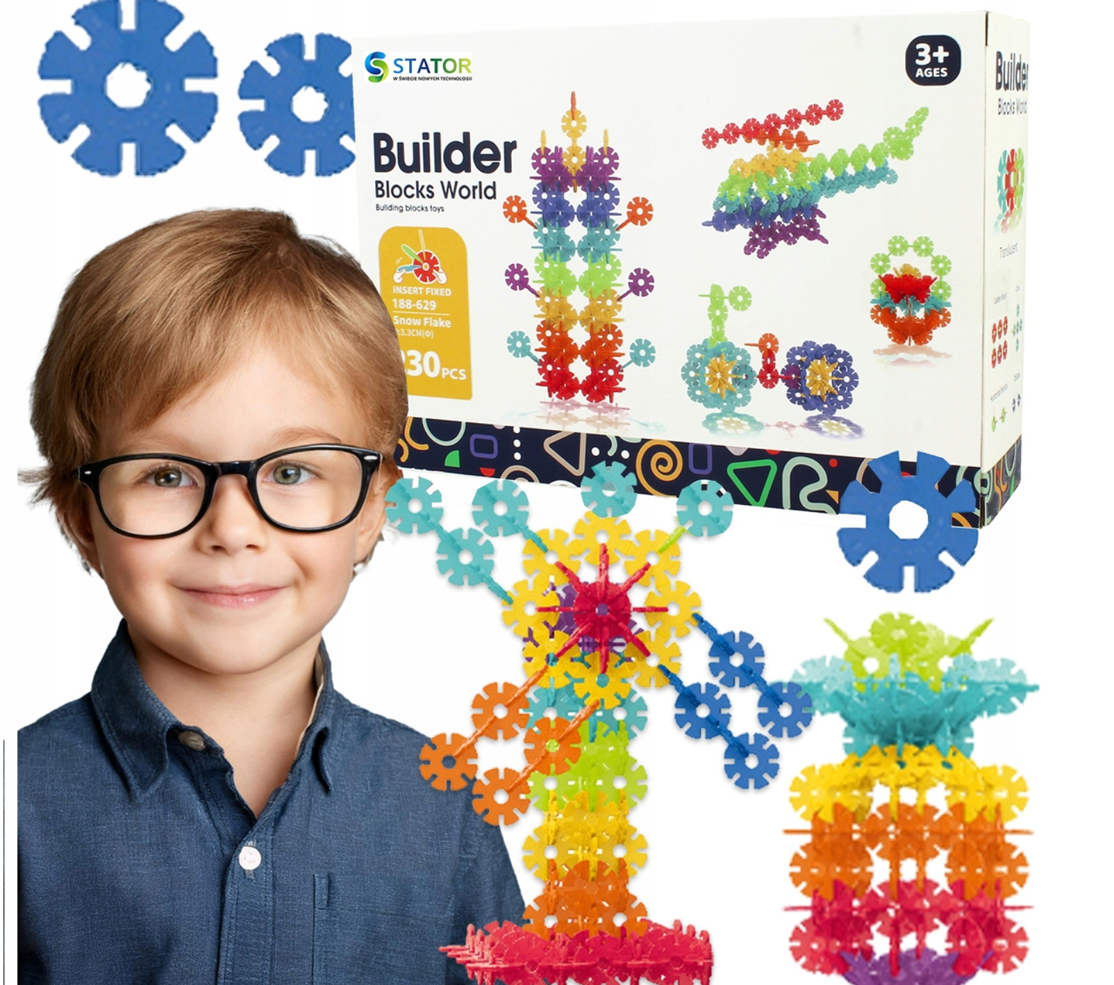 Najveća prednost ovog seta je njegov jedinstveni oblik. Oblik “pahulje” omogućuje jednostavno spajanje krugova, pružajući stabilnost i izdržljivost svim kreacijama. Kocke su izrađene od visokokvalitetnog, netoksičnog plastika s glatkim rubovima, što ih čini potpuno sigurnima za djecu stariju od tri godine.