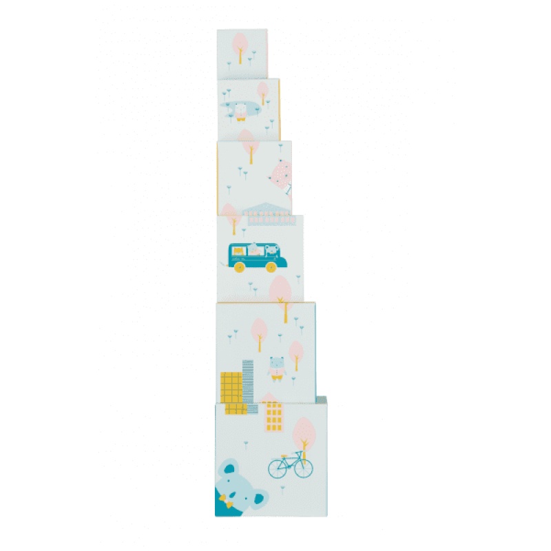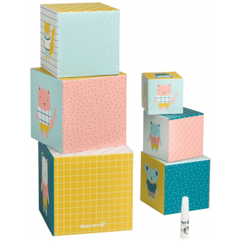 Uz obojene kocke iz Baby Arta dijete će moći izgraditi visoki toranj i satima se zabavljati uz razvijanje koordinacije, koncentracije i logičkog razmišljanja. Kocke s prekrasnim ilustracijama sa životinjskim motivima u pastelnim bojama mogu se slagati u toranj i umetati prema veličini.Kocke za aktivnosti originalno su rješenje za stvaranje, otiskom bebine ruke ili stopala, preslatkog suvenira na ove iznimne trenutke.