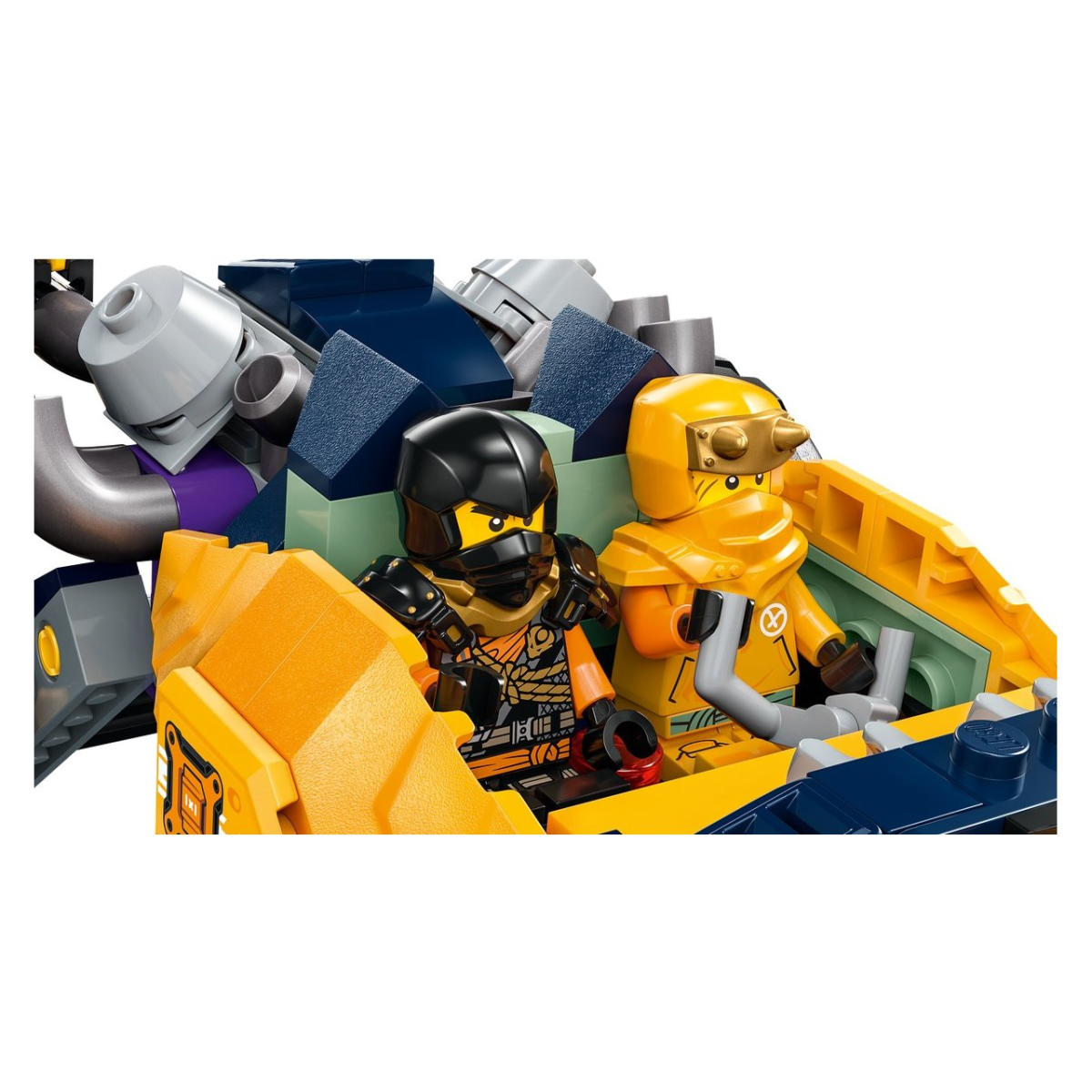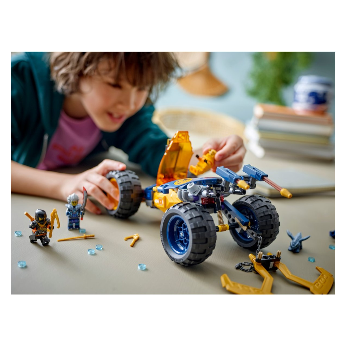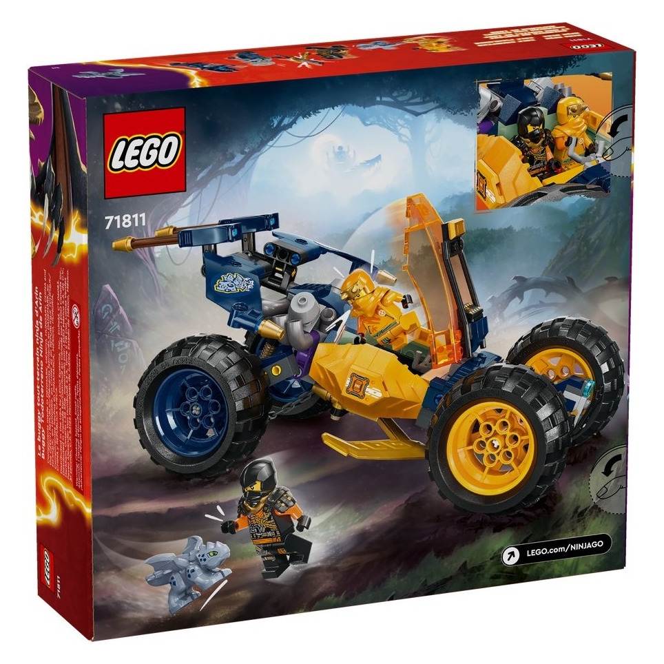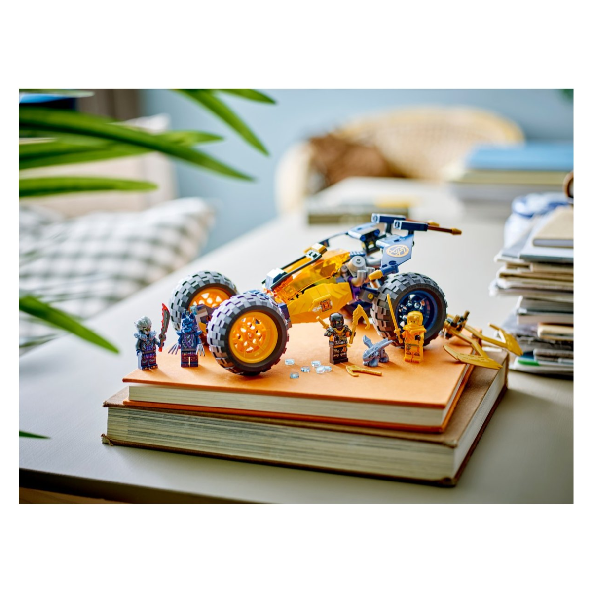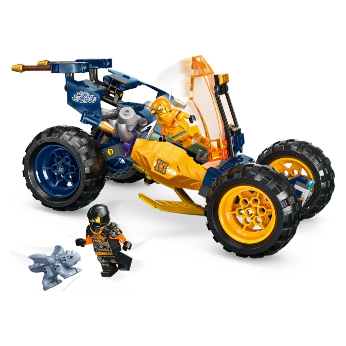 Arinov ninja off-road buggy moćno je vozilo opremljeno otvorenim kokpitom za dvije minifigure, pomičnim kotačima sa suspenzijom i velikom kukom za hvatanje neprijatelja. Dva bacača projektila s ukupno 6 projektila osiguravaju uzbudljive borbe, a u kompletu su i omiljeni heroji i negativci iz serije.