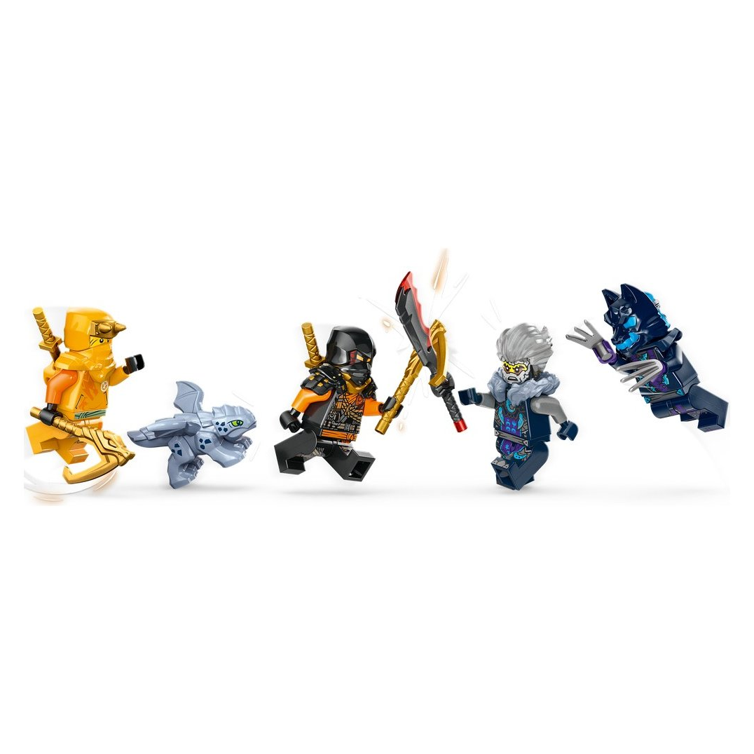 • 4 NINJAGO® minifigure: Kompletu su priložene minifigure Climber Colea, Arina, Cindera i Wolf Mask Claw Warriora s oružjem i pribором.