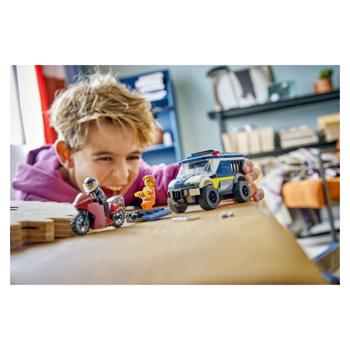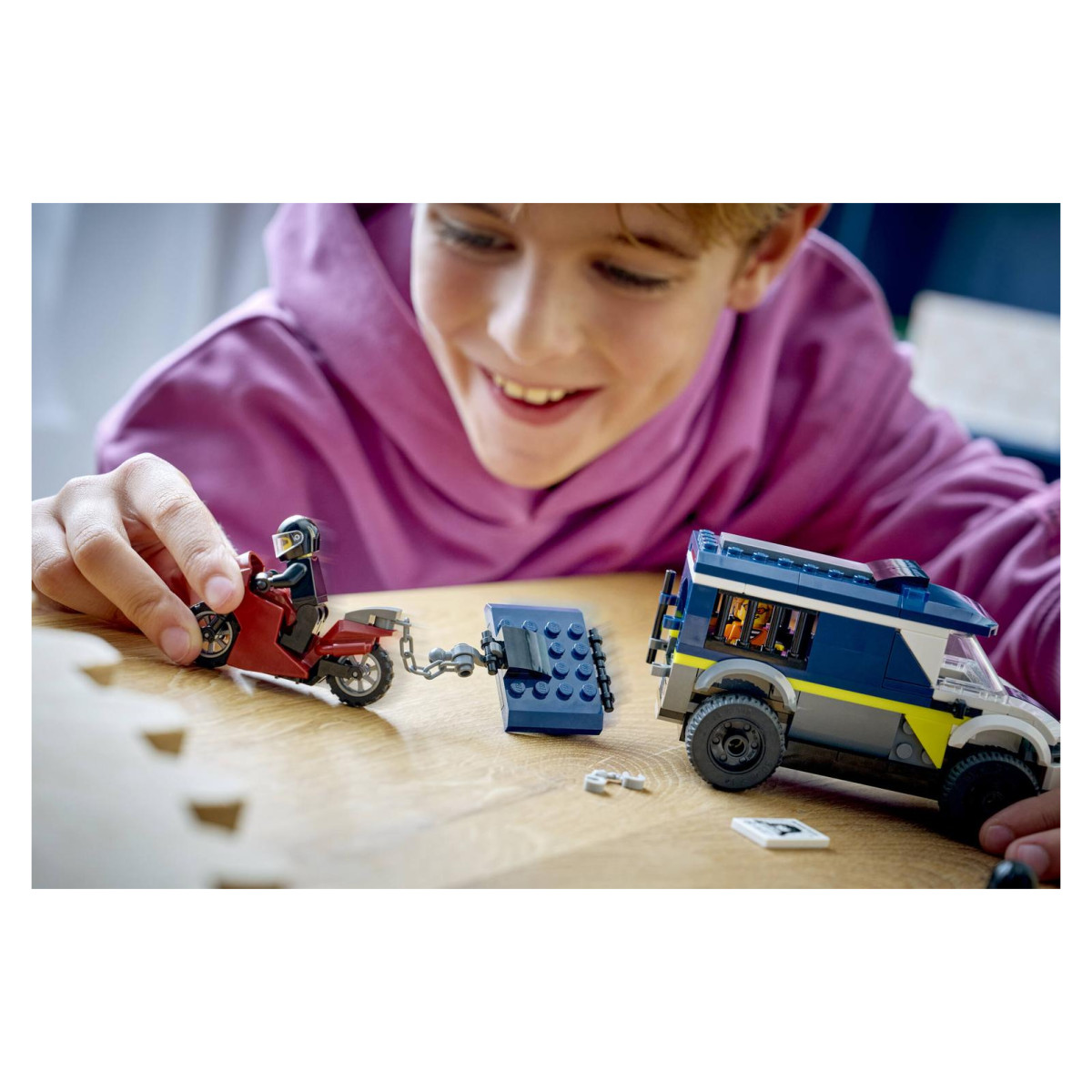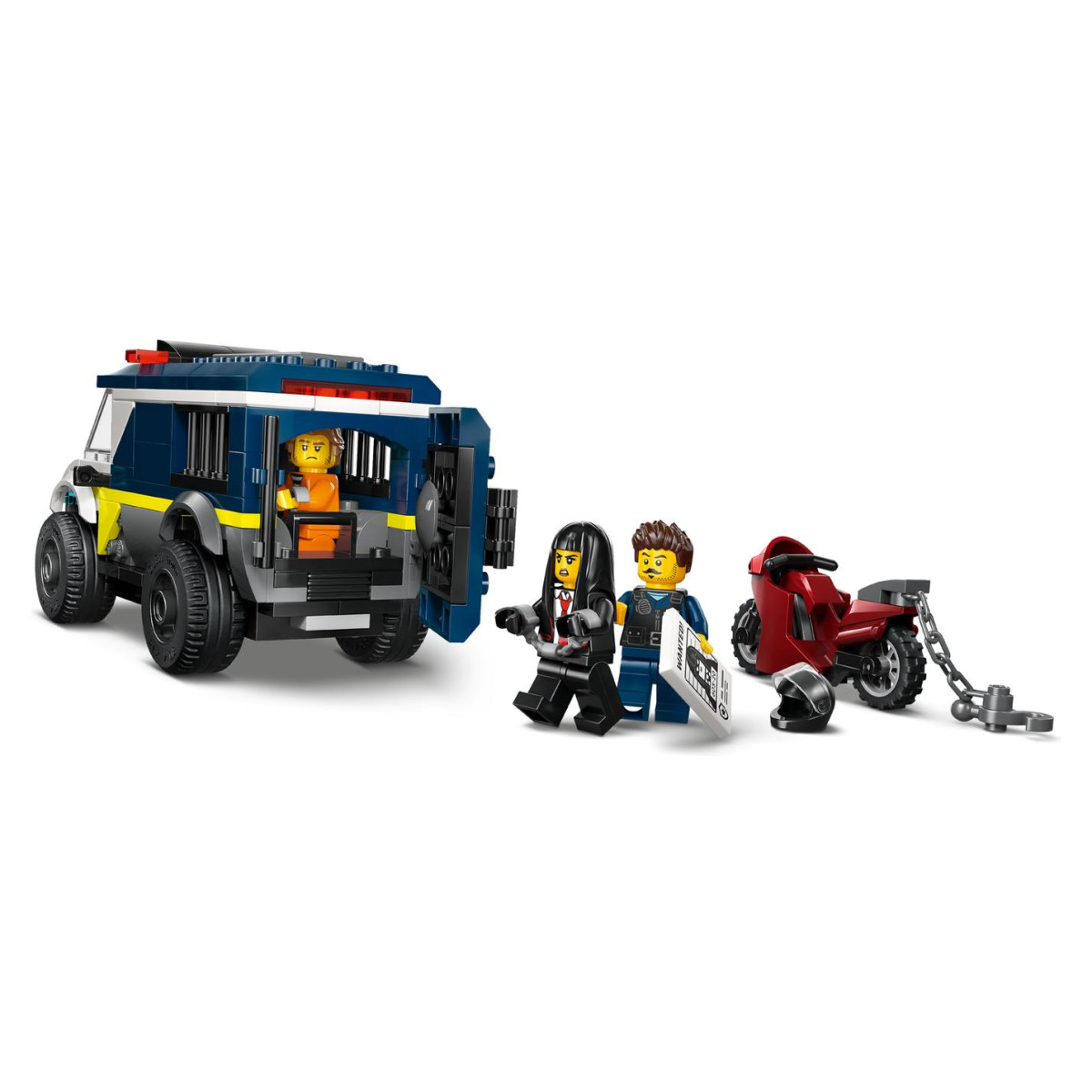 U kompletu dolaze dvije minifigurice – odlučni policajac i lukavi zatvorenik – spremni za nebrojene akcijske scene i uzbudljive priče. Djeca mogu izmišljati vlastite misije: od hvatanja kriminalaca do njihova sigurnog transporta u zatvorskom vozilu.