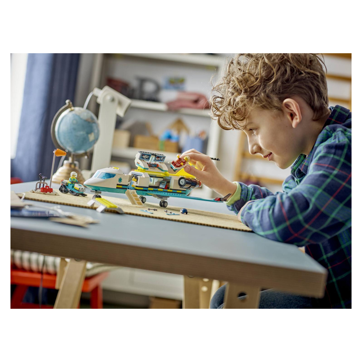 Sa 403 pažljivo osmišljena dijela, djeca će uživati u sastavljanju aviona koji se otvara kako bi otkrio detaljnu medicinsku unutrašnjost. Tu se nalazi sve što je potrebno za pravu hitnu pomoć: nosila, boce s kisikom i različita medicinska oprema, idealno za sve male doktore i pilotkinje s velikom maštom.