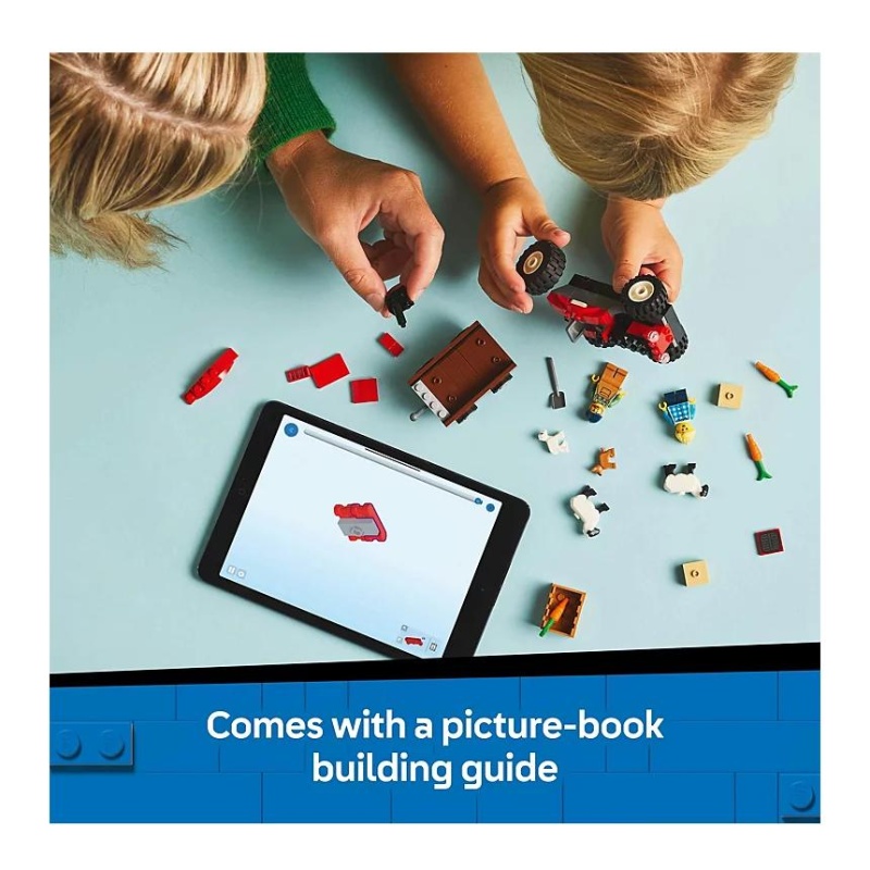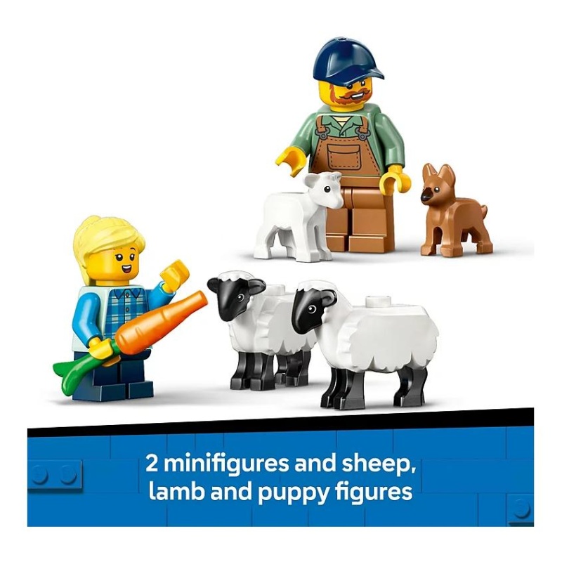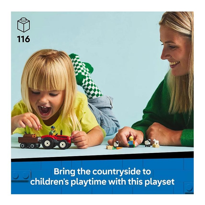 Dizajniran za djecu od 4 godine i stariju, ovaj LEGO® set dolazi s jednostavnim dijelovima koji su idealni za male ruke. Set uključuje crveni traktor s odvojivom prikolicom u koju djeca mogu utovariti sijeno ili prevoziti svoje vesele ovčice. Uz to, tu su figurice farmera i njegove unuke, kao i preslatke figurice janjeta, ovaca i veselog psića, koji donose dodatnu draž ovoj seoskoj pustolovini.