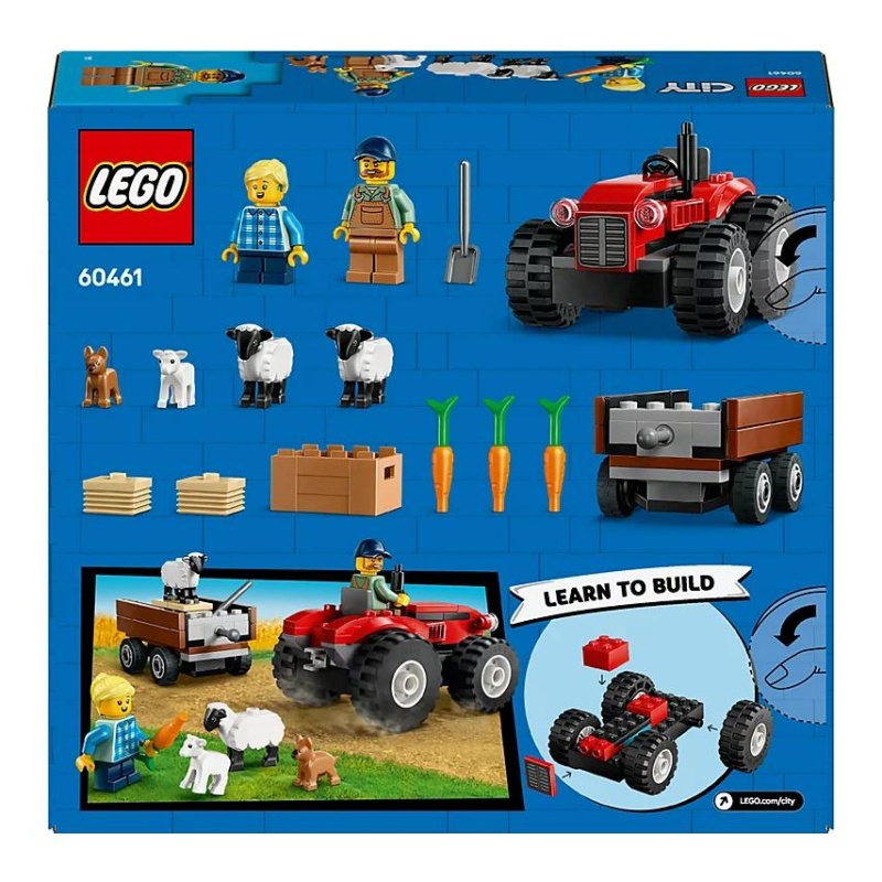 Zamislite sunčani dan na selu, gdje vrijedni farmer i njegova unuka brinu o svojim životinjama. LEGO® City crveni traktor s prikolicom i ovce (60461) donosi radost i učenje kroz igru. Ovaj komplet savršen je za dječju maštu, jer im omogućuje da se brinu o ovcama, hrane ih mrkvama i slažu sijeno baš poput pravih farmera.