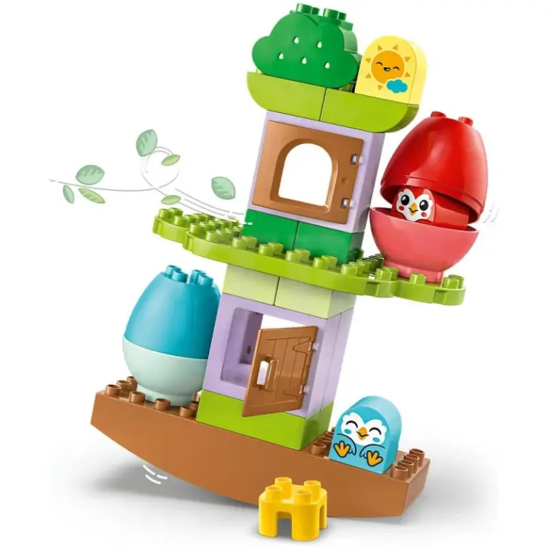 Ova predškolska igračka osmišljena je kako bi potaknula razvoj vještina rješavanja problema i strpljenja kod mališana dok pokušavaju složiti elemente da bi drvo bilo u ravnoteži. Djeca koja vole životinje mogu dodavati dodatne kockice kako bi stabilizirala drvo ili jednostavno istraživati drvenu kućicu sa LEGO® DUPLO® figuricama sova.