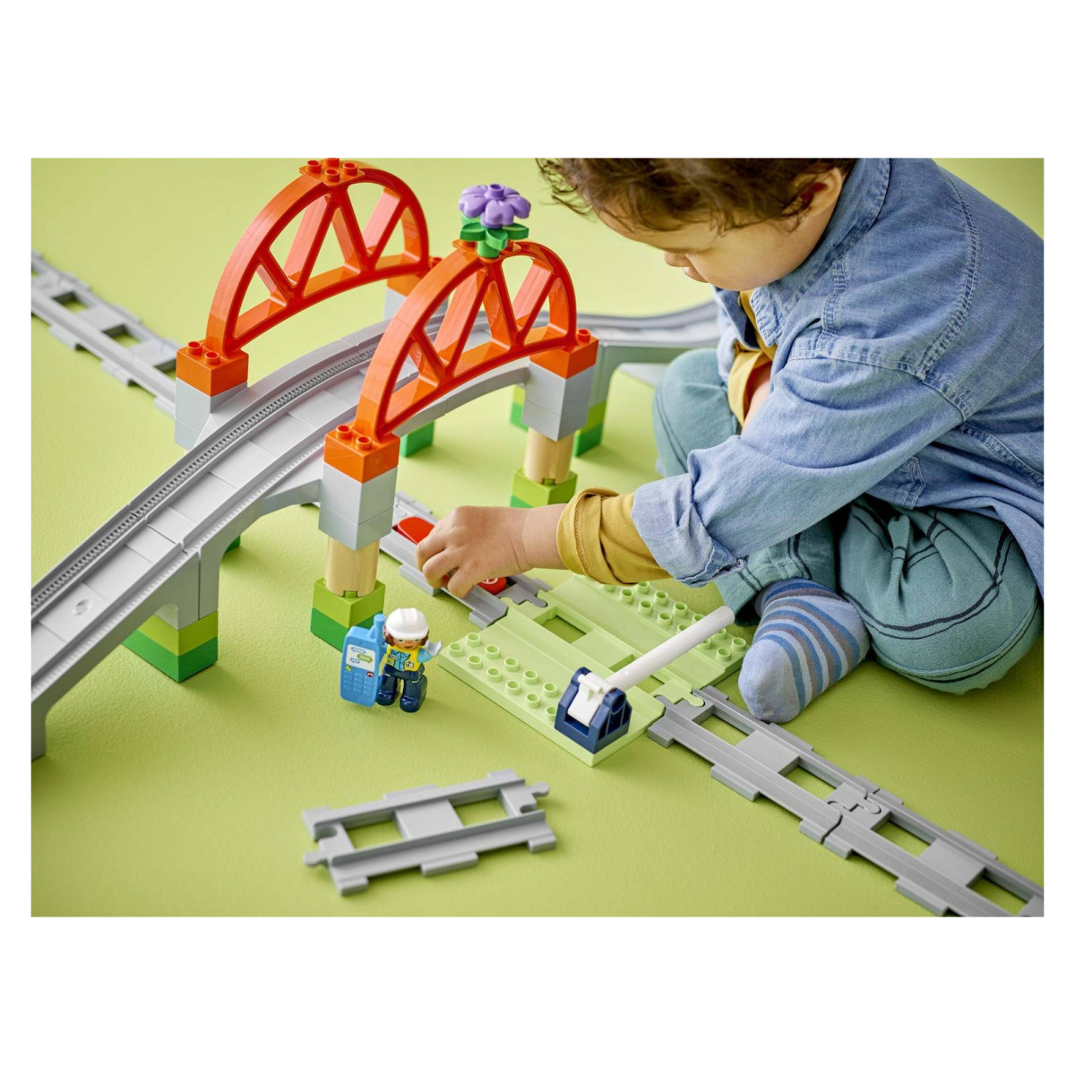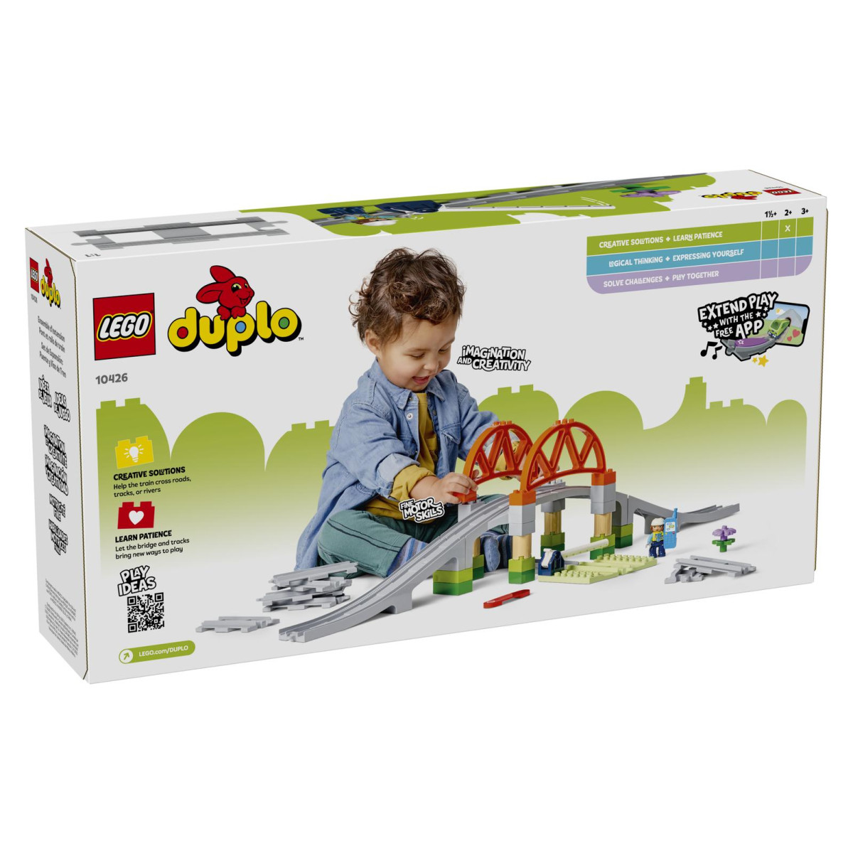 Podižite vlakove, istražujte nove putove i potičite dječju maštu uz ovaj sjajni set proširenja iz serije DUPLO Town. Ovaj komplet sadrži gradivi most i pokretni prijelaz, što mališanima omogućuje da sami stvaraju uzbudljive željezničke avanture. Sa 42 pažljivo dizajnirana dijela, mali graditelji mogu stalno iznova slagati prugu i smišljati nove izazove za svoje vlakove.