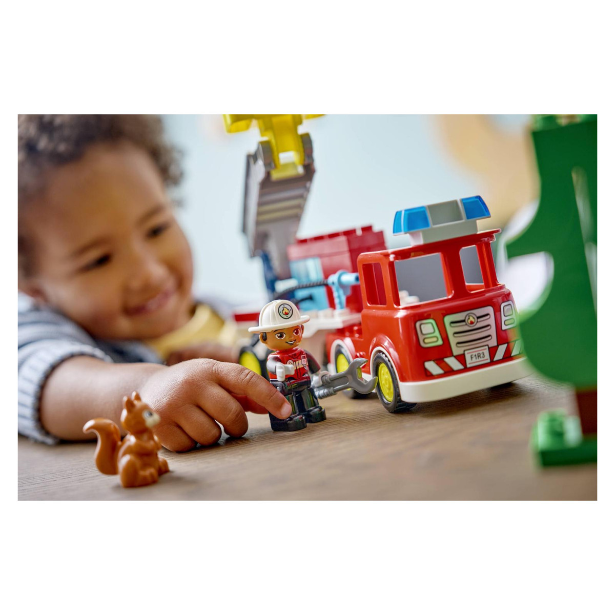 - Potiče maštu i ulogu heroja: Spašavanje drvene klade uz pomoć vatrogasnog vozila i promatranje vjeverca razvija empatiju i osjećaj odgovornosti.