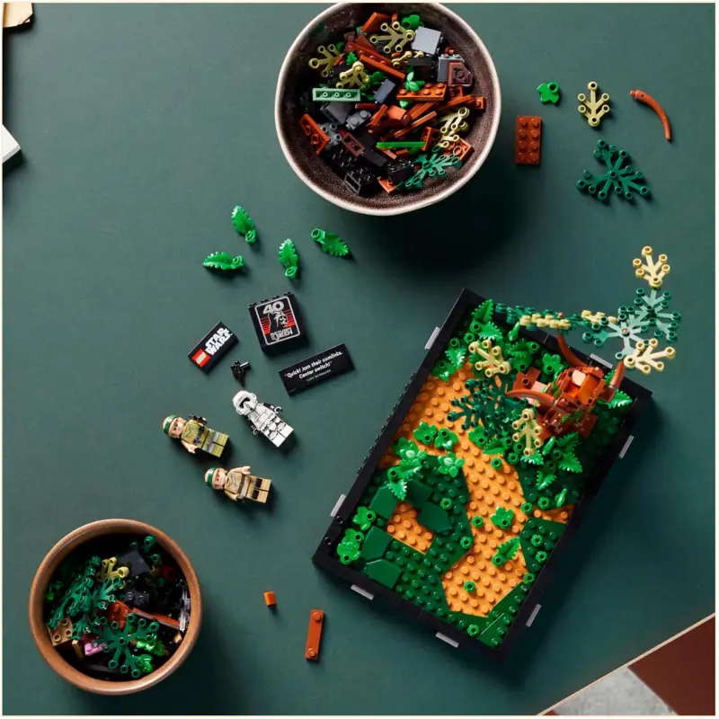 Za dodatnu atmosferu, set uključuje i 2 sklopiva stabla koja će kreirati autentičan okoliš Endora. A tu su i novi elementi paprati koji će dodati svježinu svakoj igri. Ovaj set je istinski posvećen detaljima i vjernosti filmu Ratovi zvijezda: Povratak Jedija.