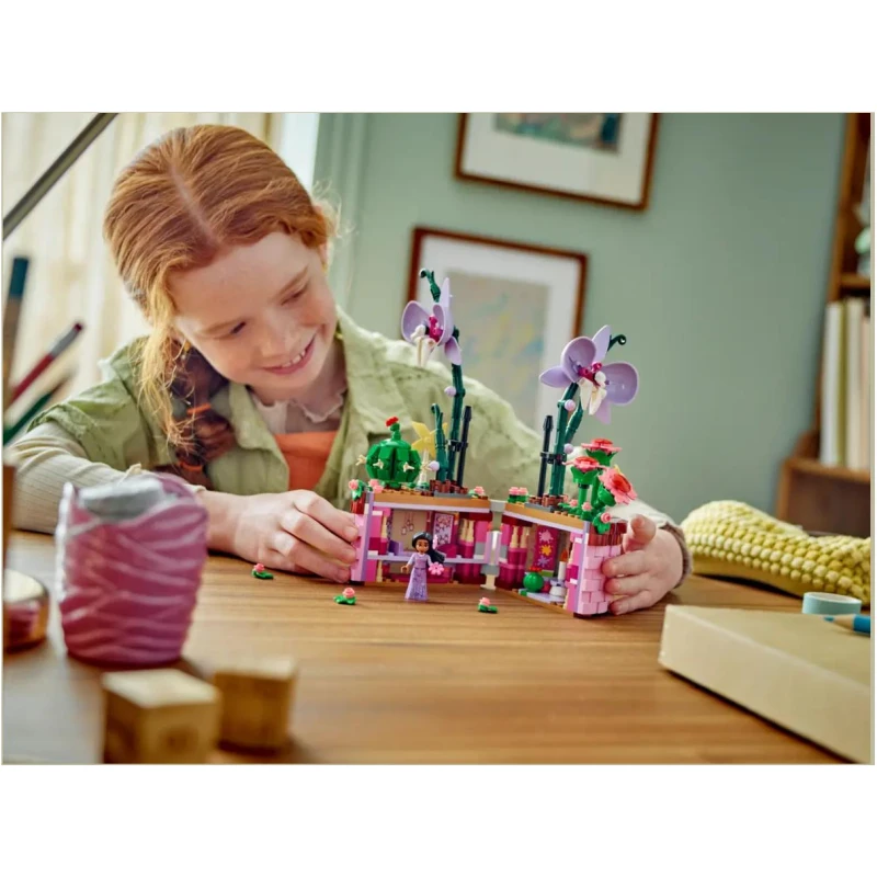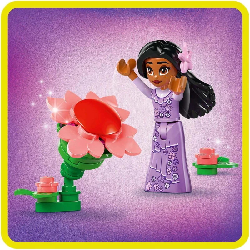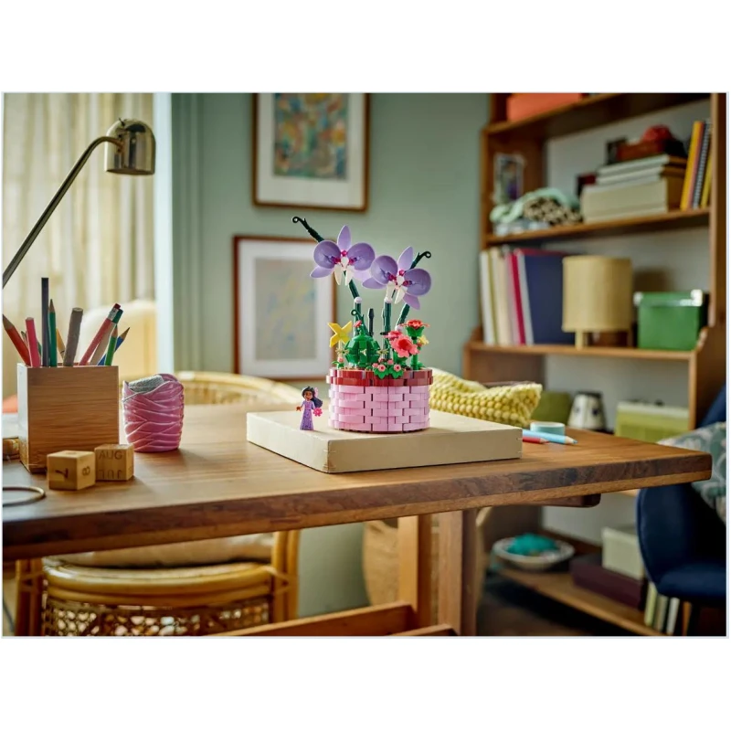 Zamislite trenutak kada se upustite u svijet Isabeline posude s cvijećem iz LEGO® | Disney kompleta. U očima Isabelinog omiljenog orhideja, kaktusa i iznenađenja, otkrit ćete čaroliju koju ova posuda donosi. Otvorite košaru i dočekat će vas predivna soba, u kojoj se osjećate kao kod kuće. Tu su krevet, svjetiljka i još cvijeća koje svojim bojama i mirisom upotpunjuju prostor, a na zidu ćete pronaći sliku Mirabela i Isabele u zagrljaju.”