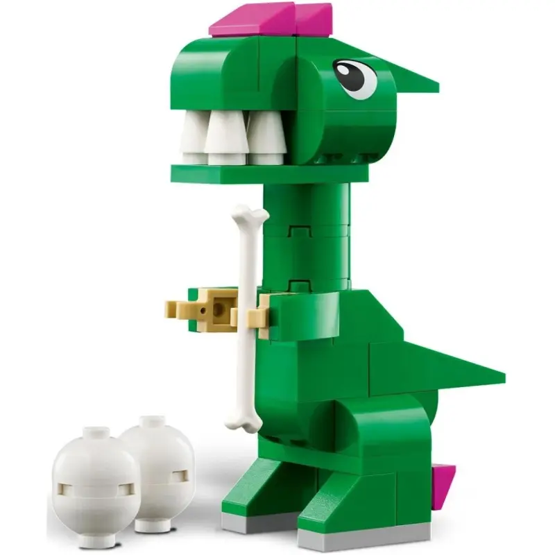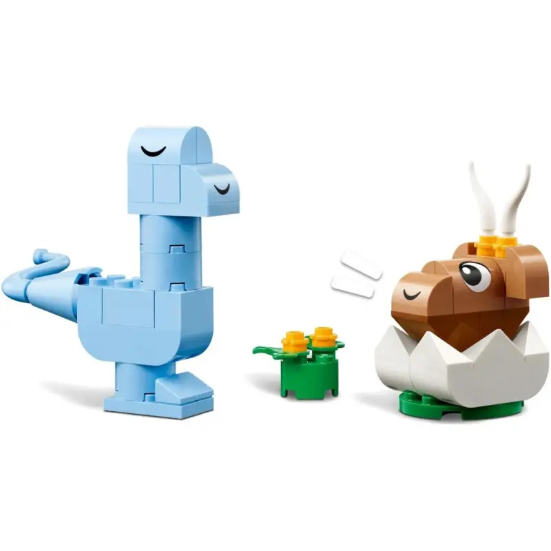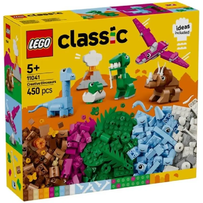 Lego Kreativni Dinosauri  je igračka namijenjena djeci koja uključuje građenje figura u plavoj, zelenoj, ljubičastoj i smeđoj boji. Ovaj izuzetno prilagodljiv set za izgradnju je idealan za razvoj kreativnih građevinskih vještina kod djece starije od 5 godina koja vole dinosauruse. Brzo se mogu sastaviti LEGO dinosauri, uključujući T. rexa, pterosaurusa, triceratopsa, brontosaurusa i bebu T. rexa u jajetu, plus vulkan, palmu i dodatne elemente koji potiču maštovite priče. Osim šarenih kocaka, set također uključuje posebne elemente poput očiju i usta koja daju dinosaurusima različite izraze lica. Kreativna zabava se nastavlja kada djeca kombiniraju kocke kako bi prilagodila svoja stvorenja. Kako se osjećaju sigurnije u svojim građevinskim vještinama, mogu slijediti intuitivni vodič za izgradnju i stvarati vlastite maštovite dinosauruse.
