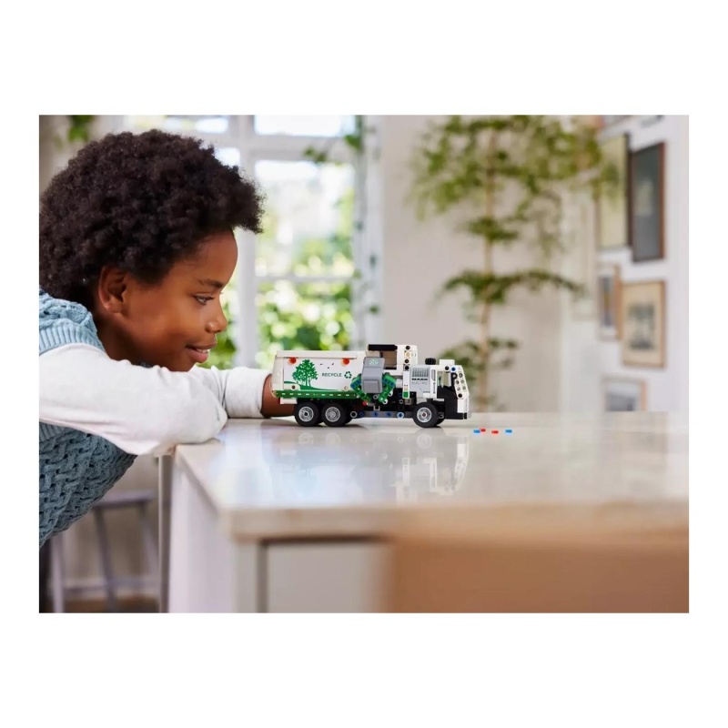 Ovaj LEGO Technic set sadrži autentične značajke pravog kamiona. Djeca mogu otvoriti vrata i zaviriti u vozačku kabinu, usmjeriti vozilo pomoću zupčanika na krovu te koristiti bočni utovarivač za podizanje i pražnjenje kanti za smeće. Uz to, set uključuje kante i sitne elemente otpada koji dodatno obogaćuju igru.