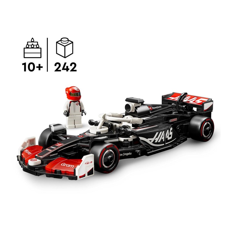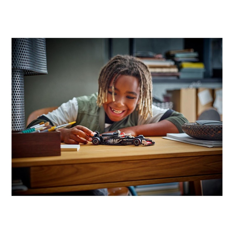 Ovaj set nije samo igračka – nakon utrke možeš ga ponosno izložiti na polici ili stolu kao dio kolekcije. Uz automobil dolazi i vozač minifigura u službenom MoneyGram Haas F1 Team odijelu i kacigi, spreman za utrku.