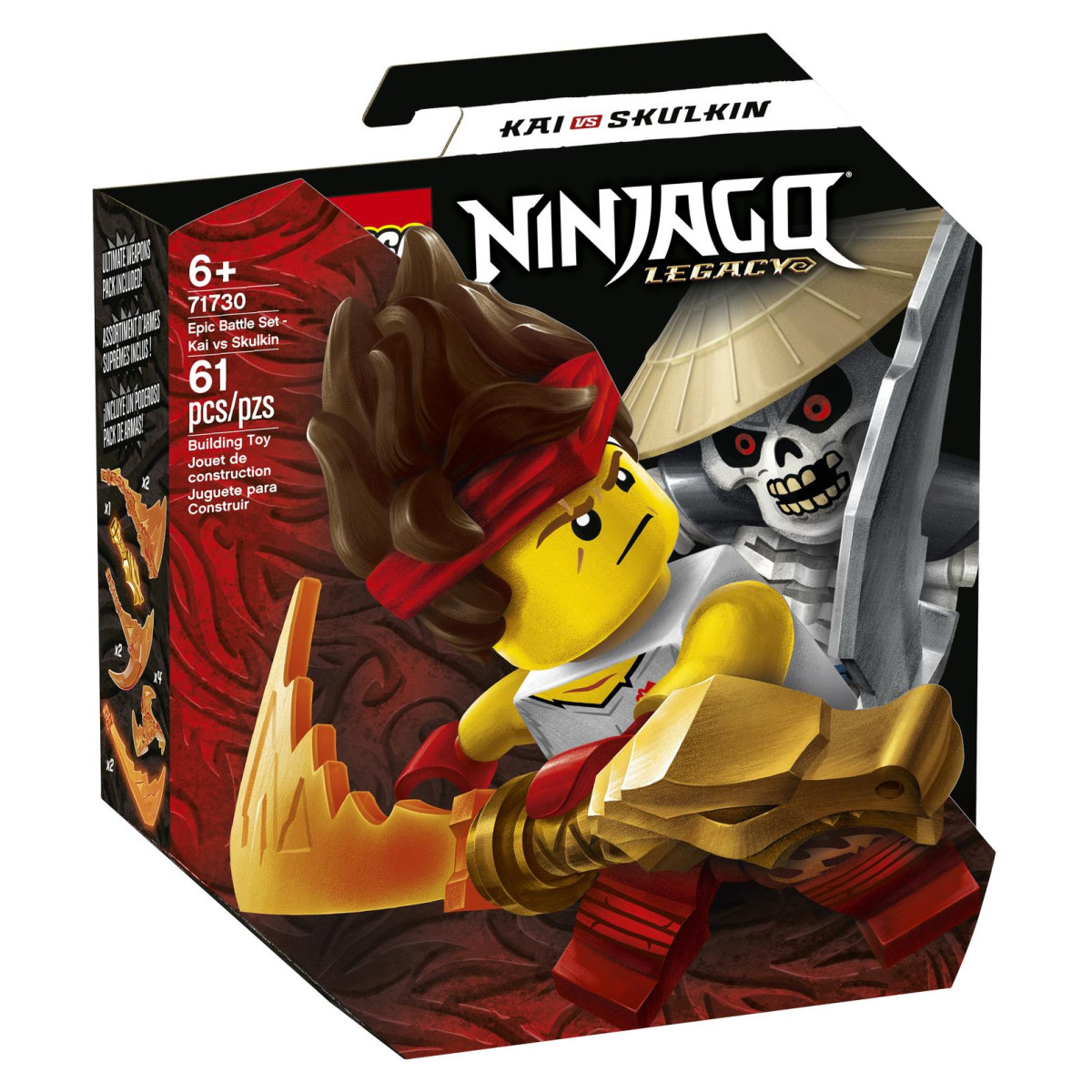 Set uključuje sve što je potrebno za dramatičnu igru – novu Kai minifiguricu iz siječnja 2021., Skulkinovu Legacy verziju iz prvih sezona kultne serije te četiri vatreno crvena oružja. Mali graditelji će uživati u sastavljanju minijaturnog hrama i moćne platforme koja omogućuje Kaiju da se okreće i lansira u bitku, baš kao pravi ninja! Kompaktne dimenzije čine ovaj set savršenim i za igru kod kuće i za ponijeti u goste.
