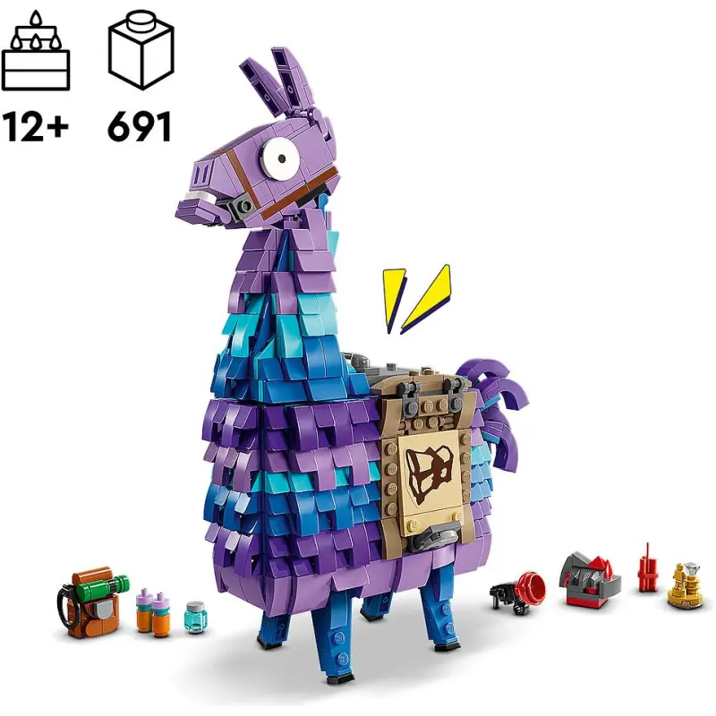 Upoznajte Opskrbnu Lamu, lika koji je postao ikoničan u svijetu LEGO® Fortnitea®. Ova videoigračka igračka ima pokretnu glavu i otvarajuća usta, što vam omogućuje stvaranje različitih scena i avantura. Zamislite samo sve što možete mijenjati i graditi s ovom izvanrednom igračkom!