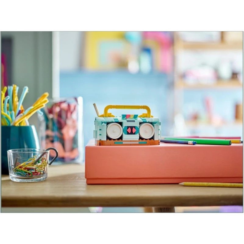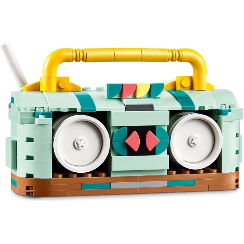 Ovaj set za gradnju uključuje LEGO koturaču s 4 ružičasta rotirajuća kotača, ružičastim čepom i žutim vezicama. Ne samo da možete složiti koturaču, već je možete i transformirati u šareni mini skateboard ili boom box u retro stilu s kratkom antenom. Sva tri modela su spektakularna i mogu se izlagati u dječjoj sobi nakon igranja kao retro ukras ili ukras za radni stol.