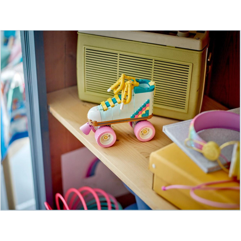 Ovaj set za gradnju uključuje LEGO koturaču s 4 ružičasta rotirajuća kotača, ružičastim čepom i žutim vezicama. Ne samo da možete složiti koturaču, već je možete i transformirati u šareni mini skateboard ili boom box u retro stilu s kratkom antenom. Sva tri modela su spektakularna i mogu se izlagati u dječjoj sobi nakon igranja kao retro ukras ili ukras za radni stol.