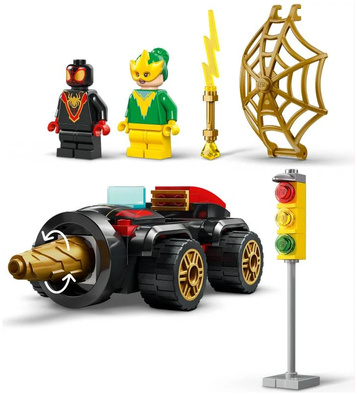 Ovo superjunačko vozilo kombinira snagu i brzinu s jedinstvenom bušilicom koja će djeci pružiti sate zabave i kreativne igre. Spiderman, sa svojim moćnim Spider-Ev autom, hrabro se bori protiv zločinaca i pronalazi put do pobjede!