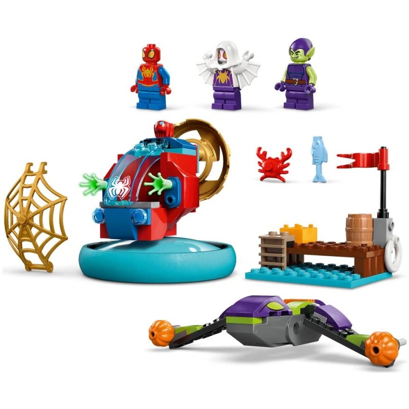Pakiranje dolazi s četiri modela vozila superheroja – Spider-Manovog voza, Green Goblinove letjelice, policijskog auta i motora. Svaki model je pažljivo dizajniran s detaljima koji će oduševiti male obožavatelje Spider-Mana. Djeca će se zabaviti sastavljajući ove male Lego kockice i pretvarajući ih u svoje omiljene vozne i letače.