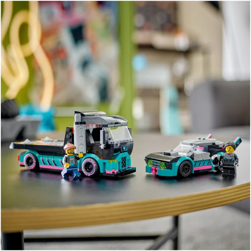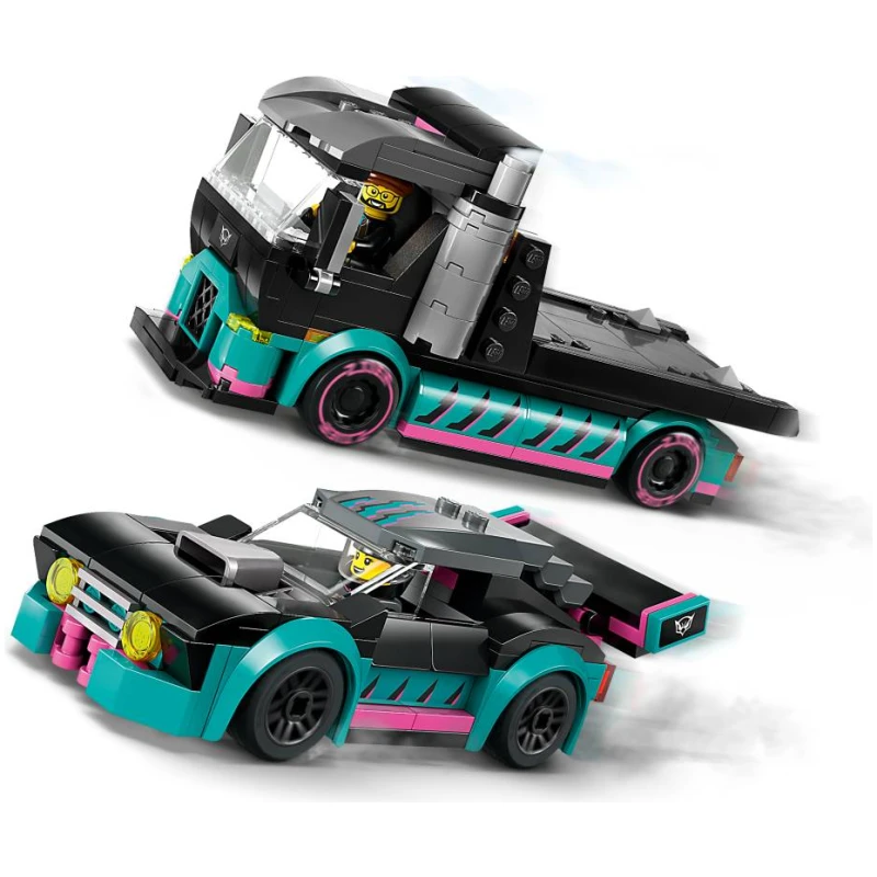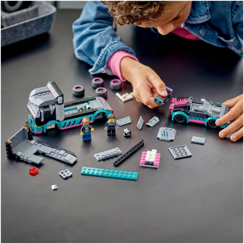 Lego Trkački Auto i Kamion za prijevoz automobila mnogo su više od obične igračke. Oni su putovanje u svijet brzine, adrenalina i uzbuđenja. Kada se trkaći auto nađe na stazi, može se vidjeti kako oči djece zasjaje od uzbuđenja. Kamion za prijevoz automobila omogućava da se zabava nastavi i izvan staze. Automobili se mogu ukrcati i istovariti sa kamiona, otvarajući mogućnosti za mnogo zanimljivih scenarija i igara.