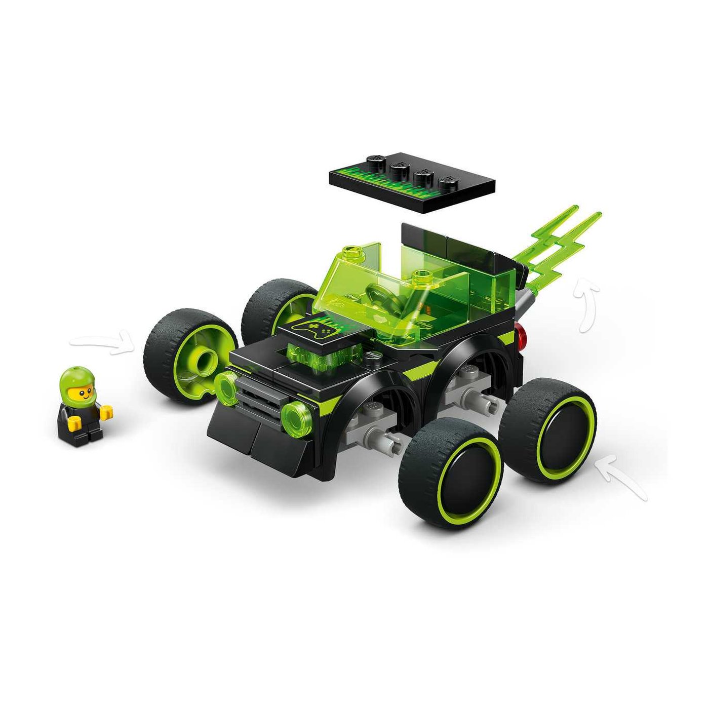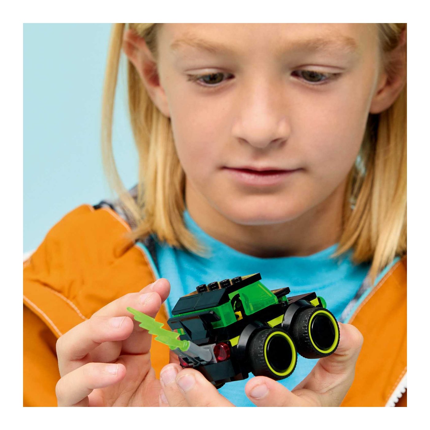 Ovaj model automobila, s prepoznatljivim neon-uzorkom i gigantskim gumenim gumama, nije samo igračka – to je alat za razvoj. Dok Vaše dijete slaže dijelove, poboljšava svoje motoričke vještine i prostornu percepciju. Sjedište vozača i plameni ispušni lonac potiču maštovitu igru, dok minifigura Juniora vozača omogućava djeci da se užive u svijet brzih, uzbudljivih avantura.