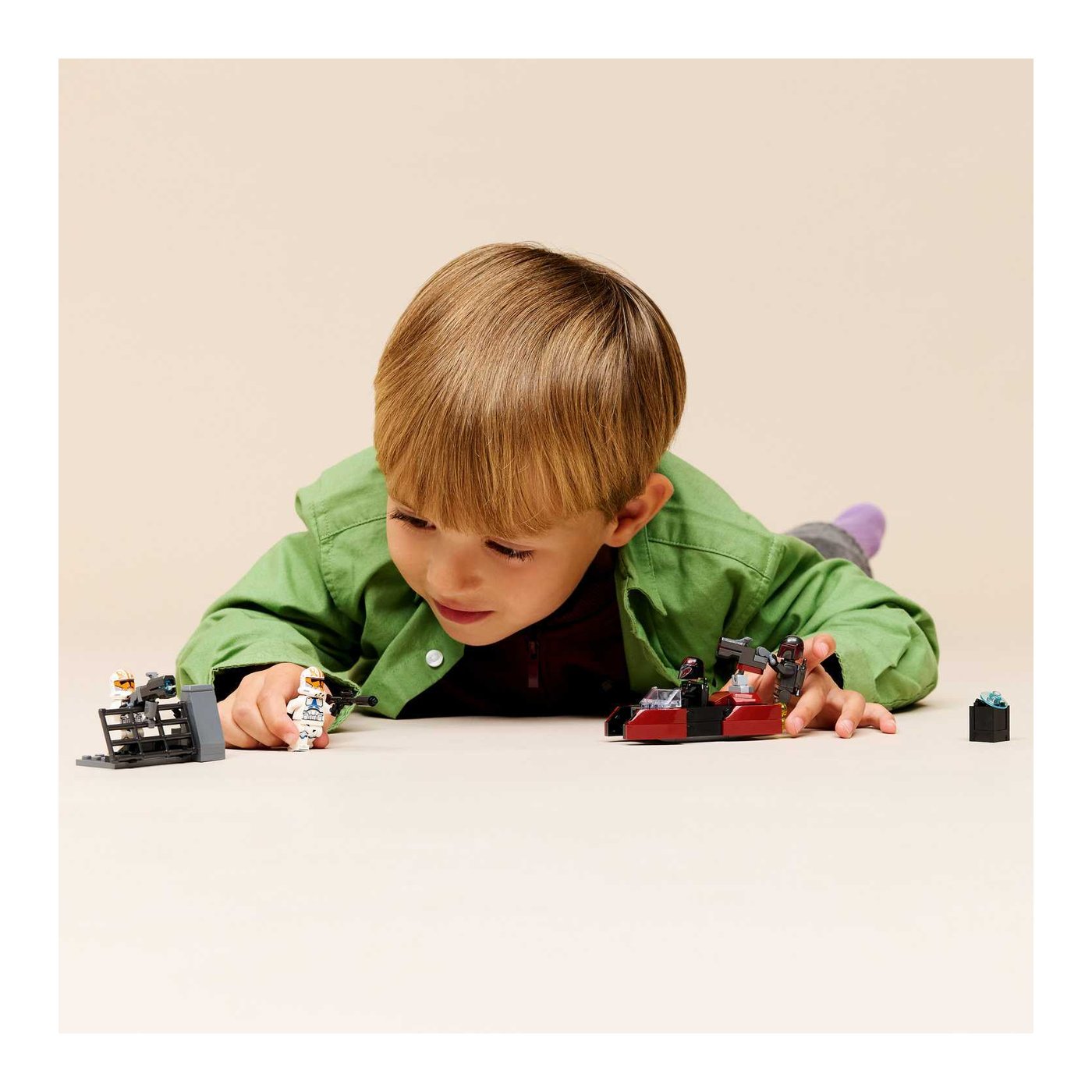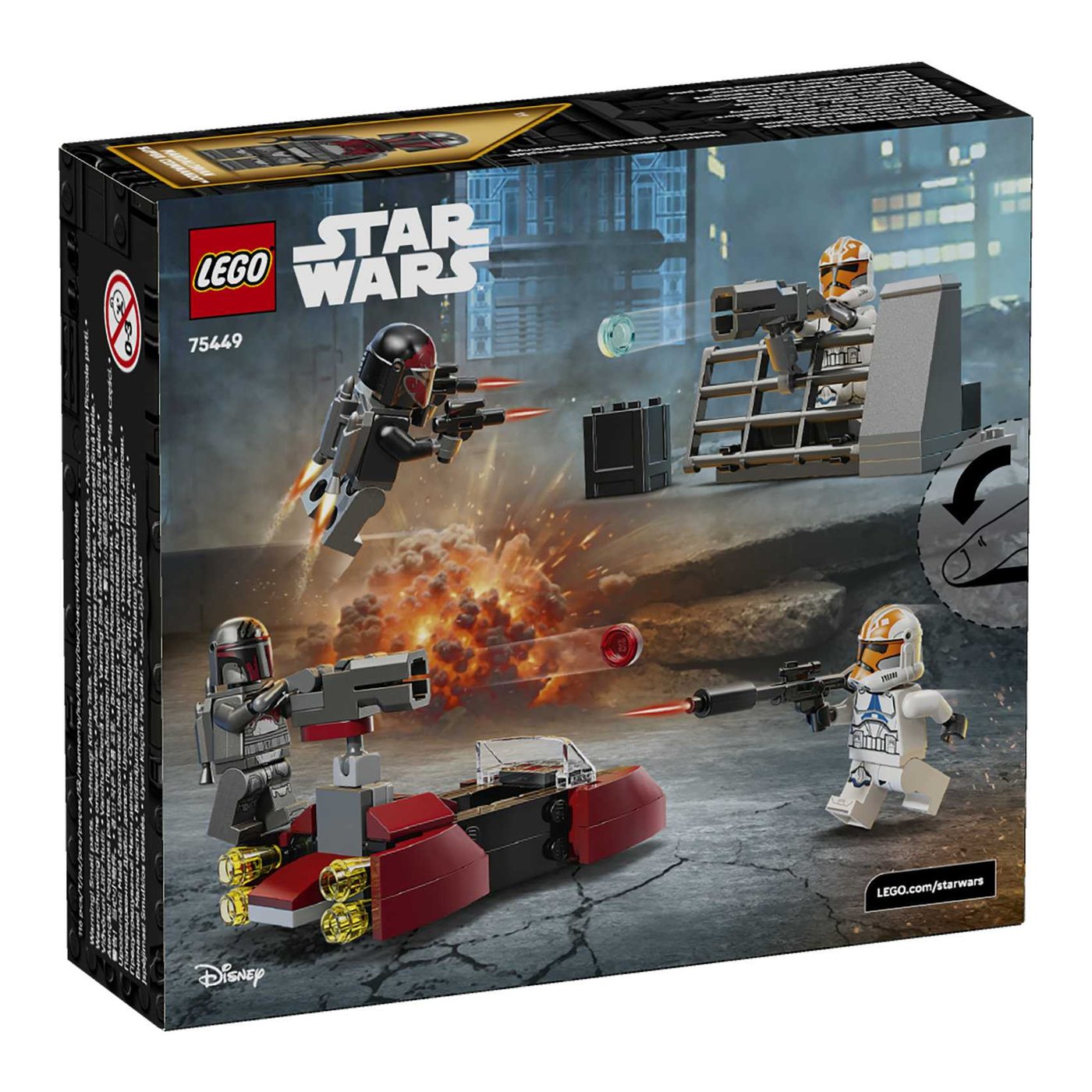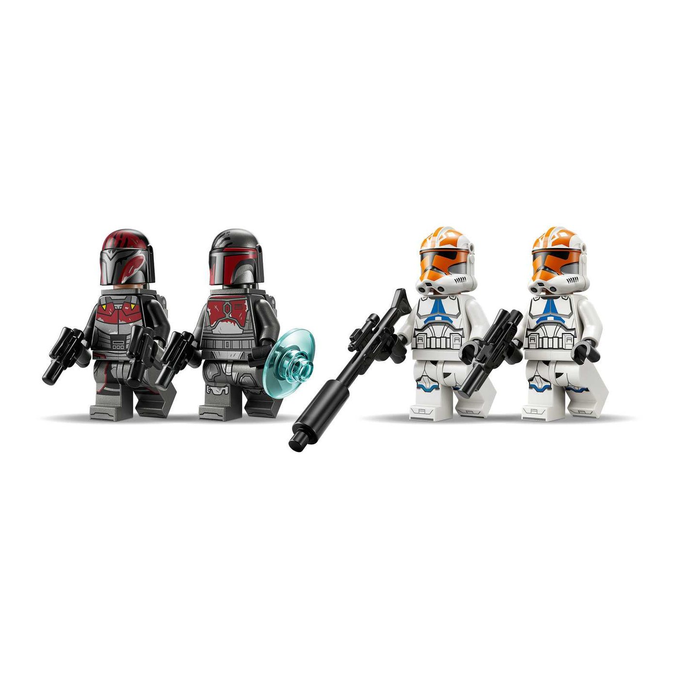 LEGO Borbeni Paket dolazi s četiri jedinstvene minifigure – dvije Mandalorianske Super Komandose i dvije Ahsoka verzije 332. Kloniranih vojnika. Svaka figura dolazi s vlastitim oružjem i dodacima, kao što su blasteri i jetpackovi, koji omogućuju raznovrsne scenarije igre. Speeder i barikada dodaju dodatnu dimenziju igri, pružajući akcijom ispunjene avanture. Onaj tko se igra može postaviti Super Komandosa za volan vozila ili iza stud-blastera, dok Klonirani vojnici brane svoj položaj iza barikade.