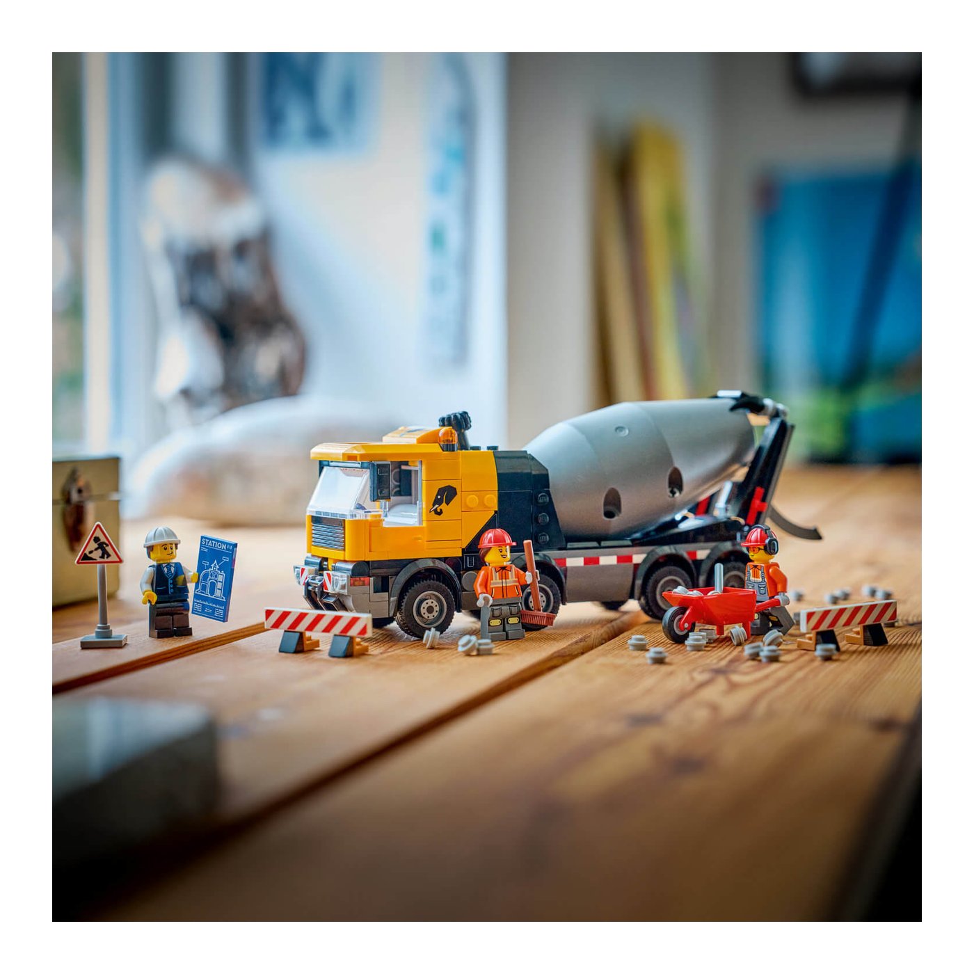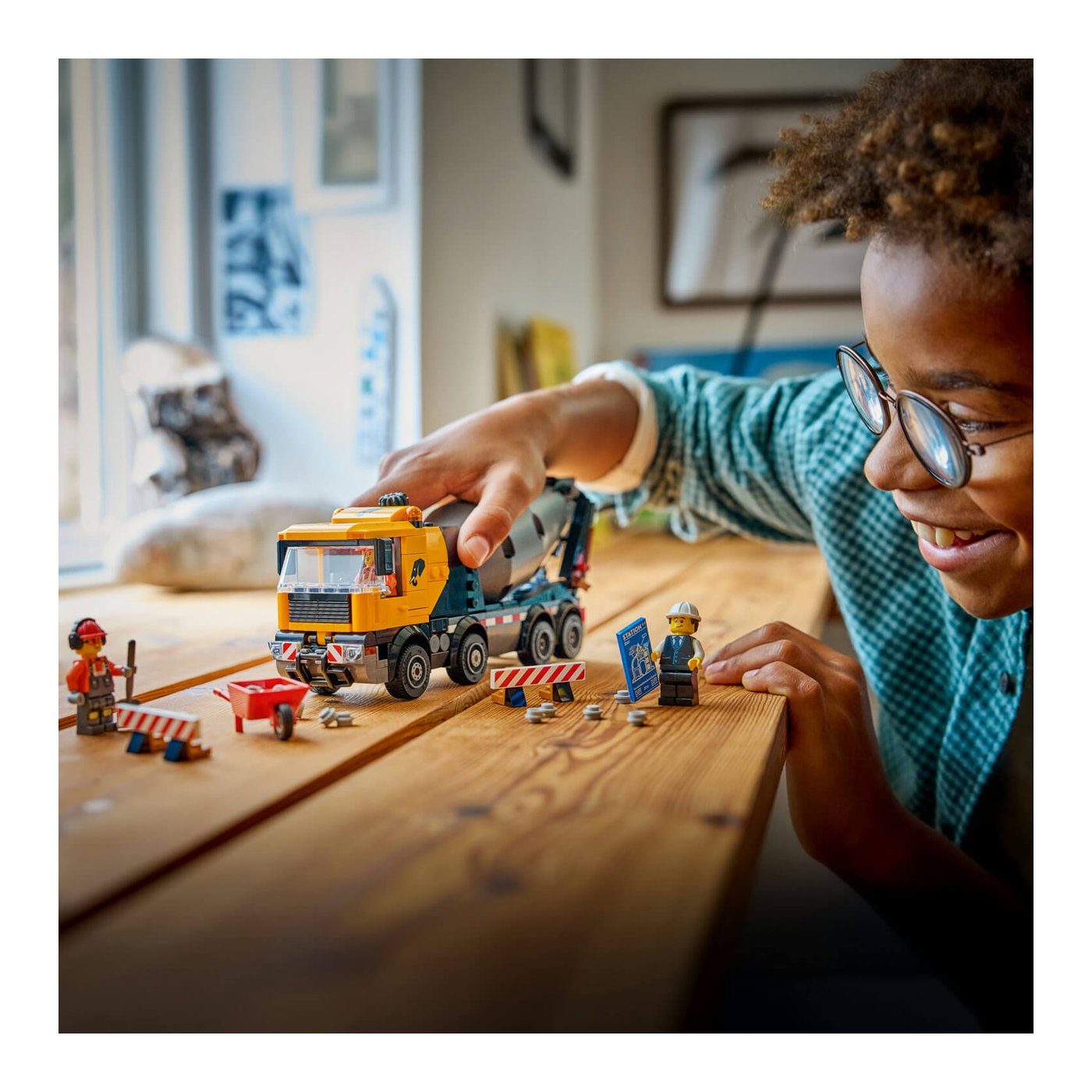 Djeca će se zaljubiti u realističan model kamiona za beton s osam gumenih guma i velikim bubnjem koji koristi Arhimedov vijak za miješanje i izlijevanje betona. Okretanjem kotačića mogu pokrenuti miješanje i izlijevanje LEGO betonskih elemenata kroz podesivu cijev, pružajući im osjećaj stvarne gradnje. Ovakva interaktivna igra potiče dječju maštu, koordinaciju i sposobnost rješavanja problema.