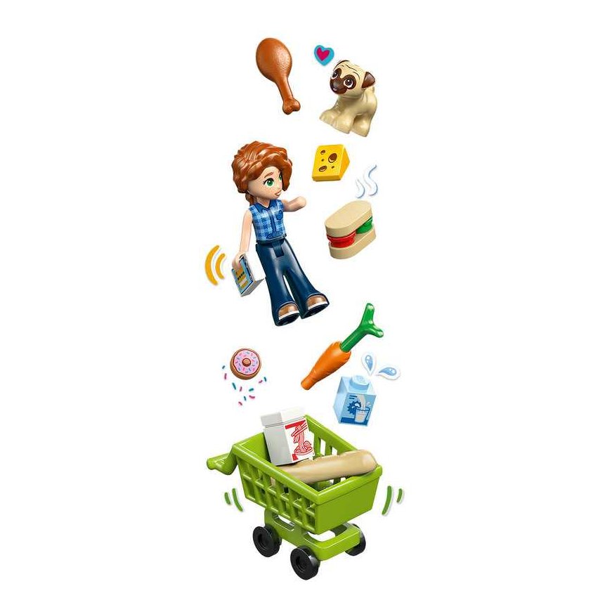 Uz mini lutke Autumn i Zac, simpatičnog psa i mnoštvo lažnih prehrambenih proizvoda – od kruha i krafni do voća i povrća – mališani mogu iznova i iznova stvarati različite scenarije kupovine. Ova igračka ne samo da potiče maštu, već i pomaže u razvoju socijalnih vještina dok djeca komuniciraju s likovima i istražuju sve slatke detalje kompleta.