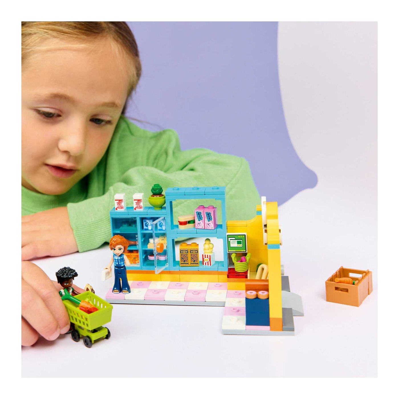 LEGO Heartlake City Trgovina Mješovite Robe (42680), savršen je poklon za djevojčice i dječake starije od 5 godina. Ovaj šarmantni komplet za igru omogućuje djeci da se urone u igru pretvaranja, potičući ih na stvaranje vlastitih uzbudljivih priča u vlastitoj trgovini. S detaljnim elementima poput polica s namirnicama, kolica za kupovinu i blagajne, djeca mogu istražiti svakodnevne društvene situacije i razvijati svoje vještine komunikacije.