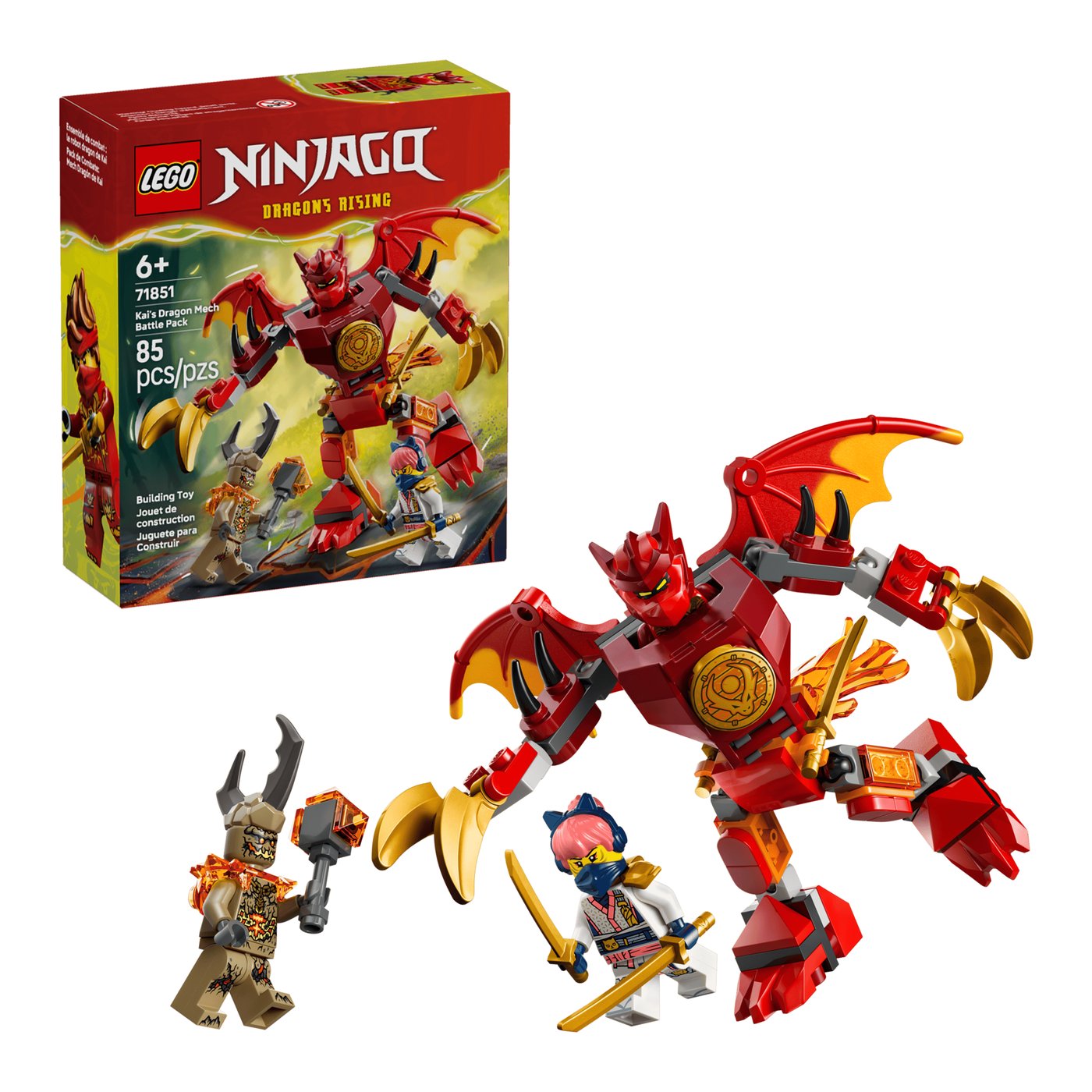 Uronite u svijet fantastičnih avantura s LEGO NINJAGO Kai’s Dragon Mech Battle Pack 71851, koji nudi neograničene sate zabave i maštovite igre za djecu od 6 godina i starije.
