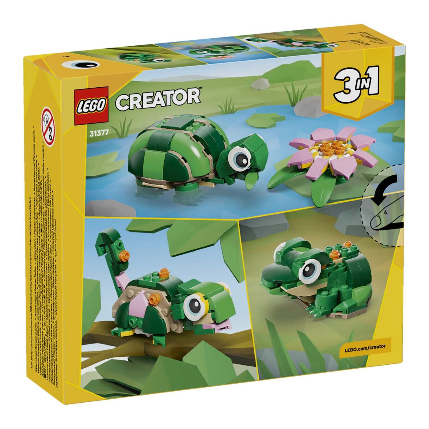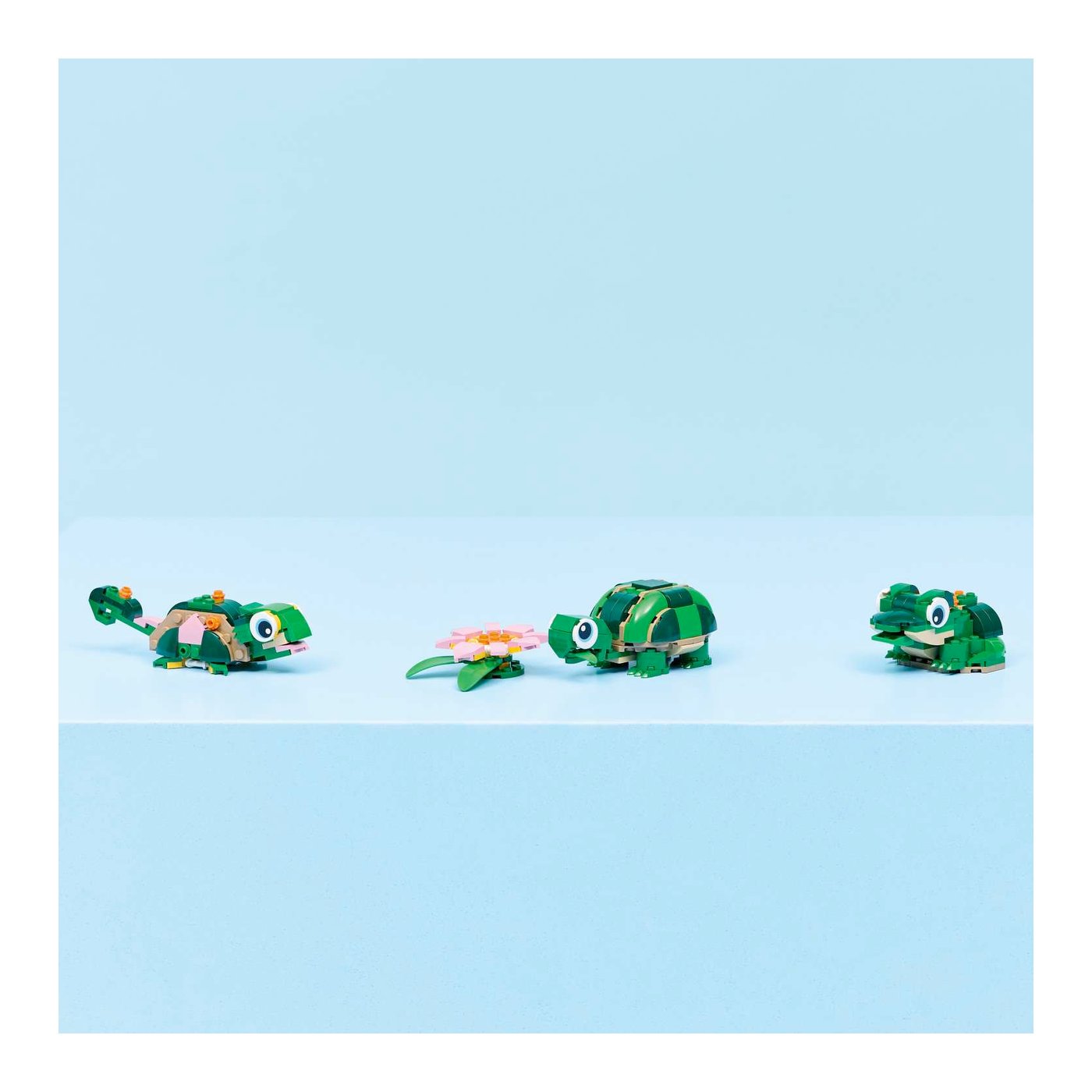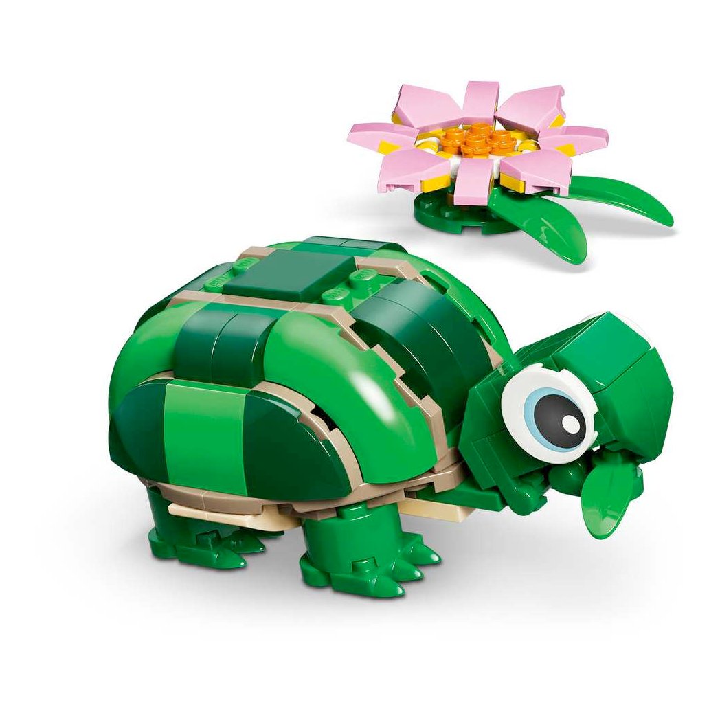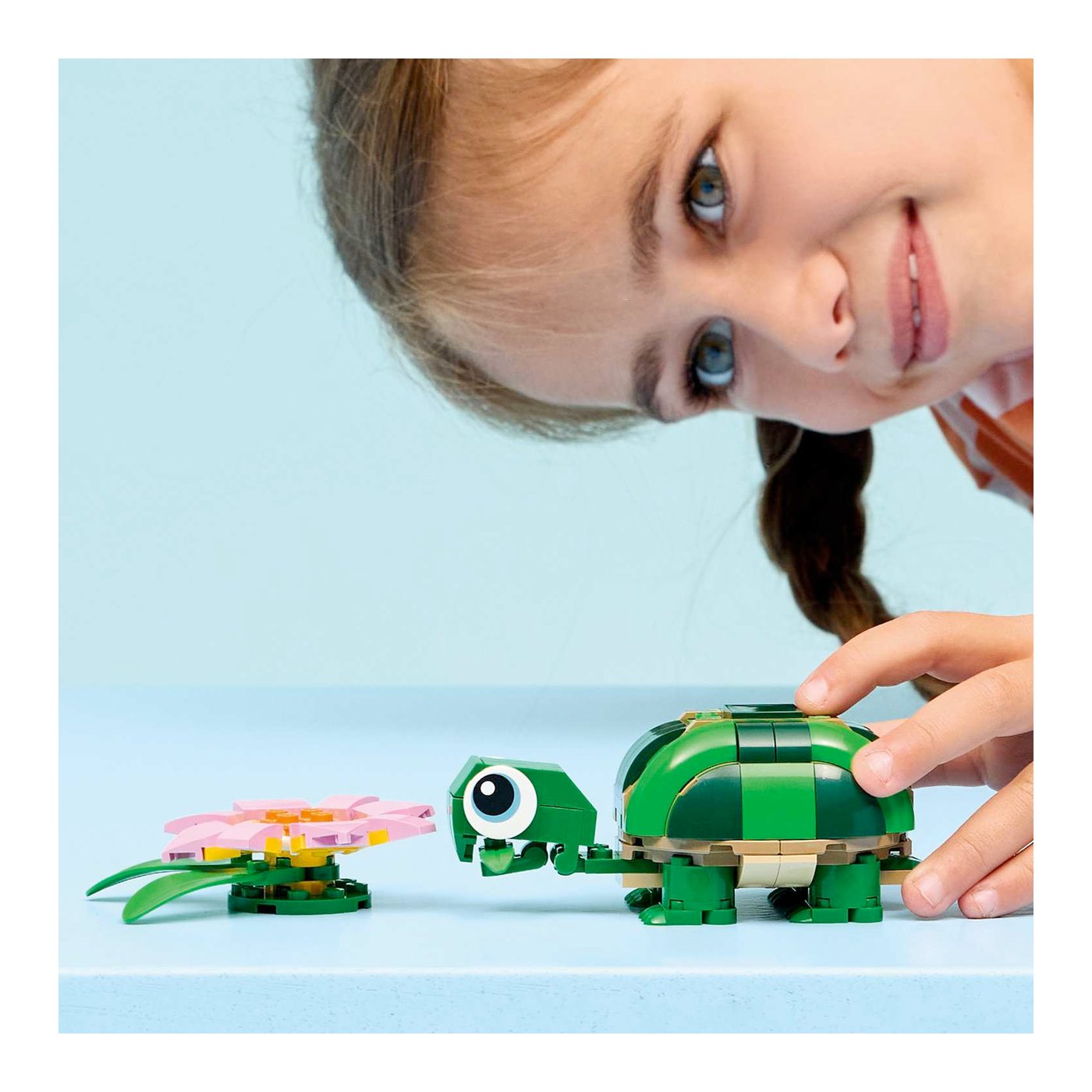 LEGO® Creator 3 u 1 komplet Kornjača s cvijetom lopoča (31377), dizajniran za djevojčice i dječake od 7 godina i starije. Ovaj šarmantni set omogućuje vašem djetetu da istraži svijet slaganja kroz tri različite životinjske figure – kornjaču, kameleona i žabu – sve to uz pomoć 124 pažljivo oblikovana dijela. Svaka figura je pomična, omogućujući djeci da razvijaju svoje fine motoričke vještine dok se zabavljaju smišljajući uzbudljive priče.